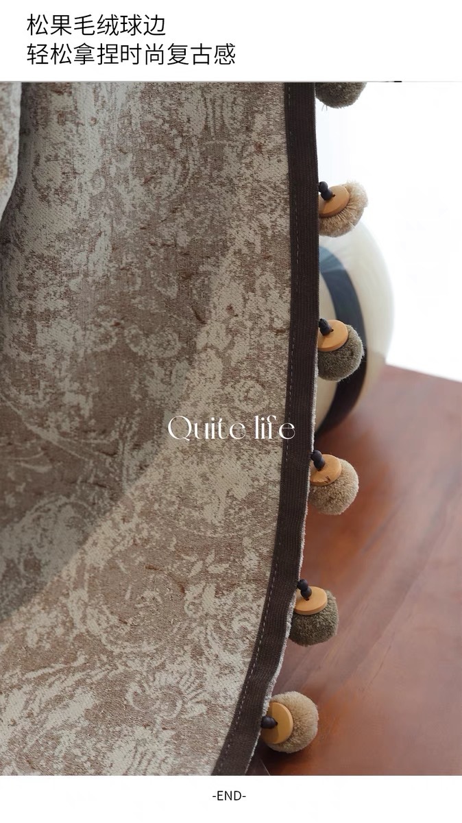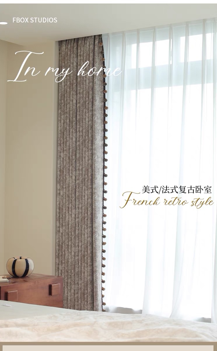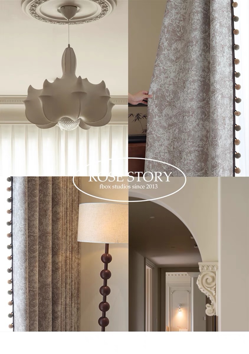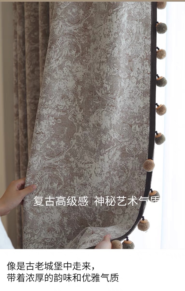 프랑스어 빈티지 로즈 스토리 레드 브라운 셔닐 커튼 거실 침실 자카드 블랙 아웃 커튼 고급 도매스토어 가기