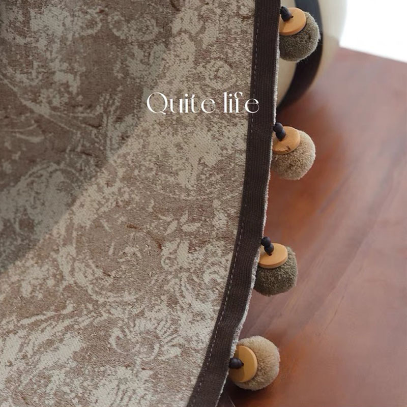 프랑스어 빈티지 로즈 스토리 레드 브라운 셔닐 커튼 거실 침실 자카드 블랙 아웃 커튼 고급 도매