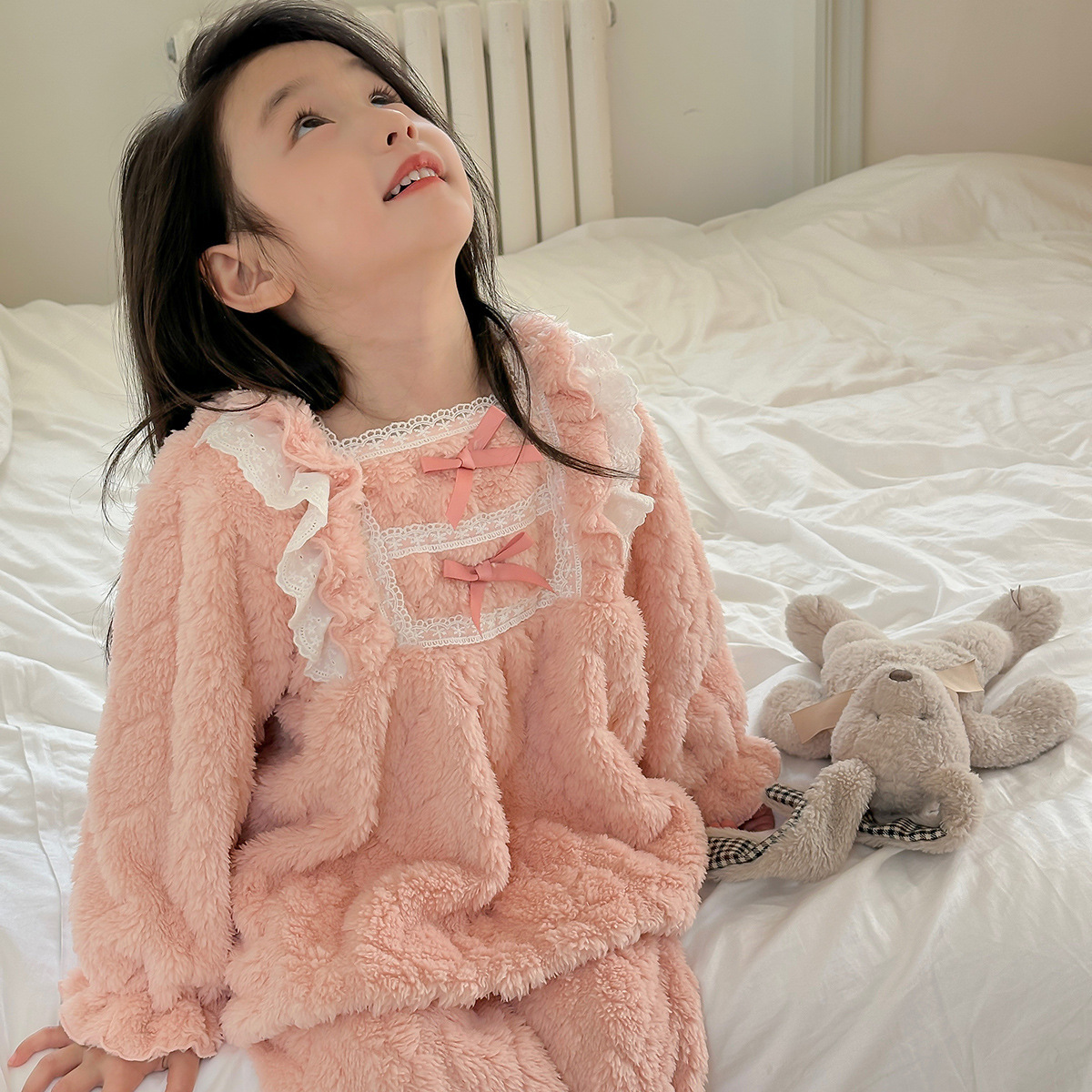 어린이 잠옷 2023 가을, 겨울 새로운 스타일 소녀의 가정 옷 아기 정장 겨울 따뜻한 가정 옷 세트스토어 가기