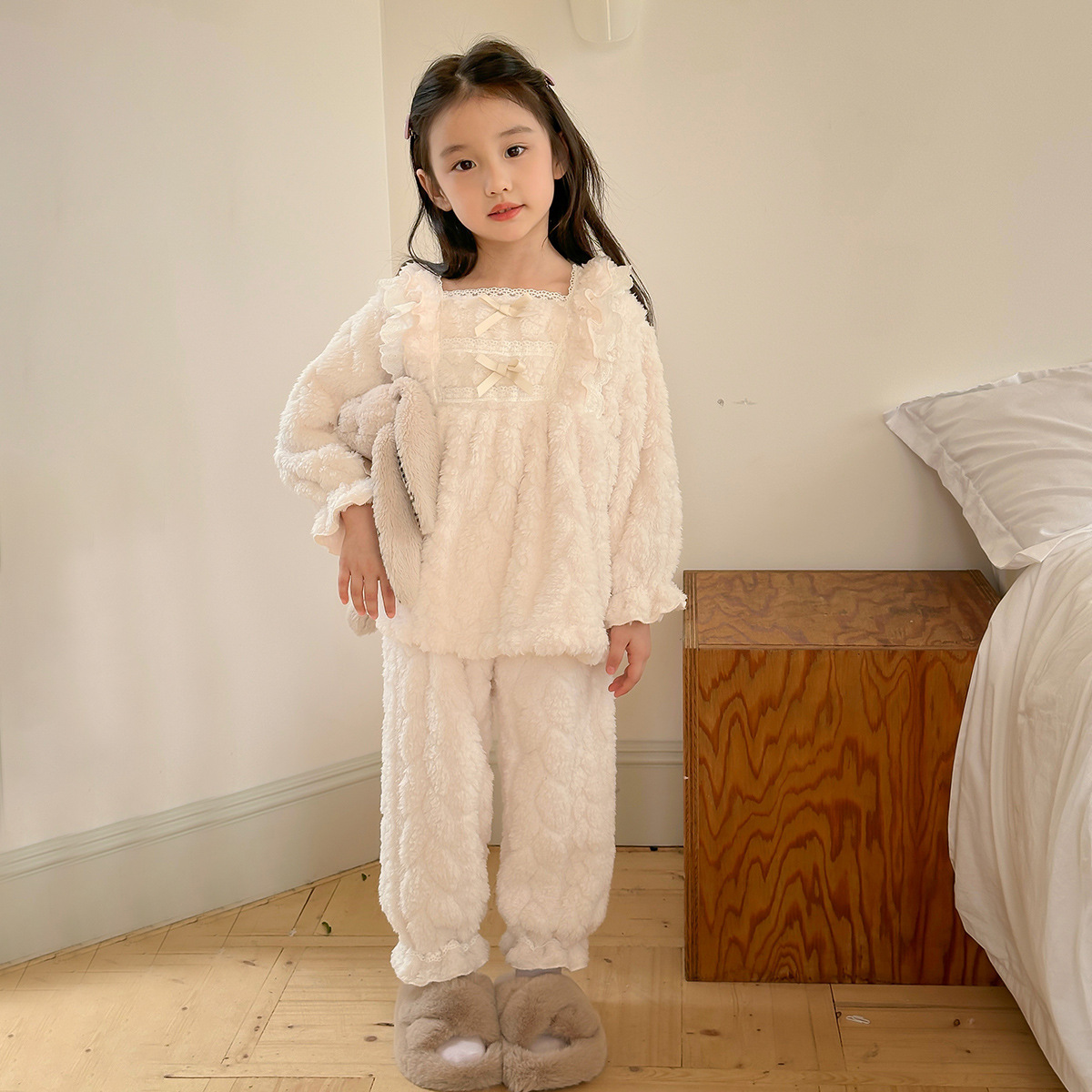 어린이 잠옷 2023 가을, 겨울 새로운 스타일 소녀의 가정 옷 아기 정장 겨울 따뜻한 가정 옷 세트