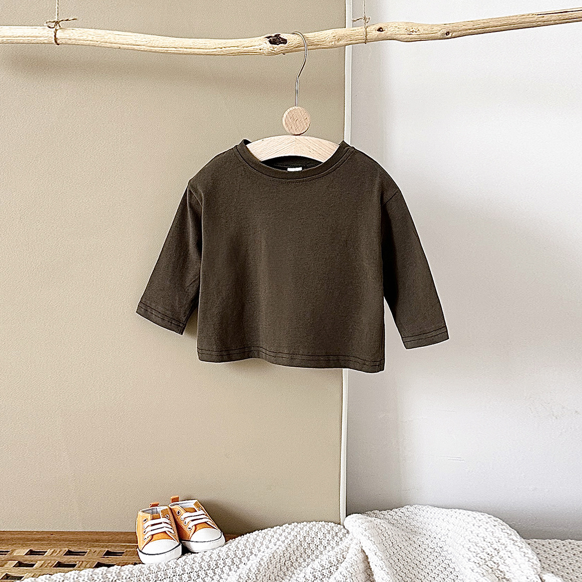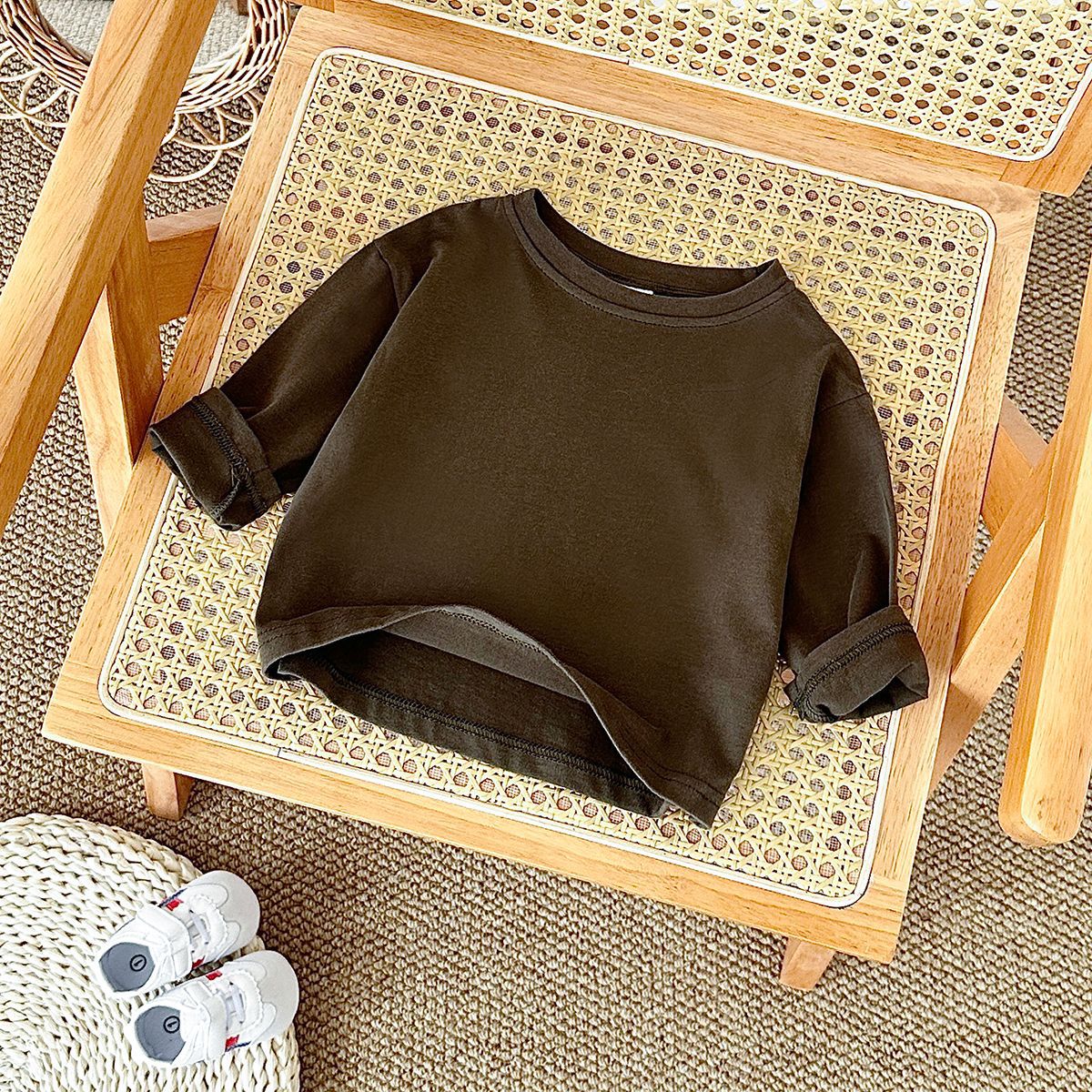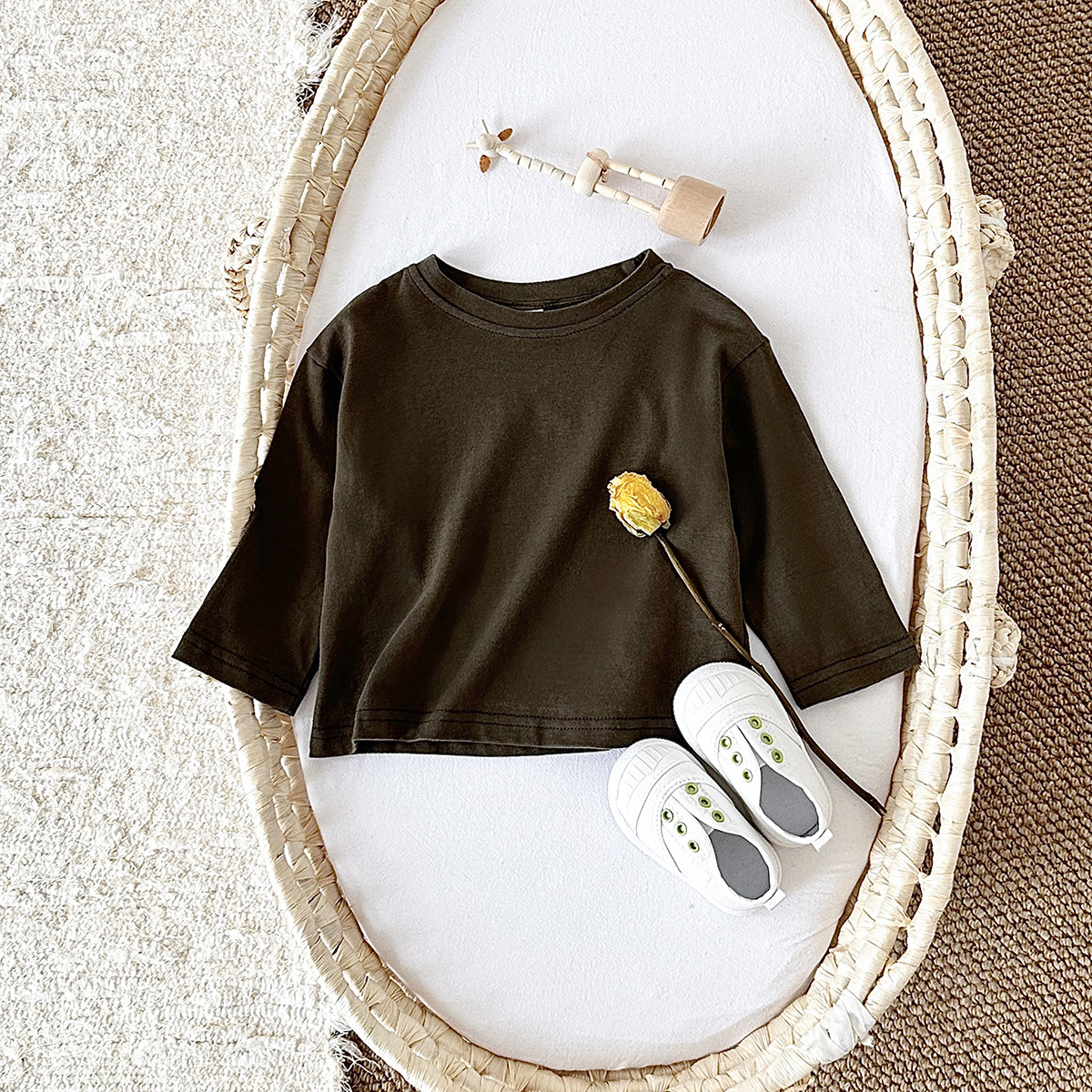 가을 신생아 순면 라운드 넥 긴팔 티셔츠 봄 아기 유아 단색 긴팔 탑 루즈 크로스보더스토어 가기