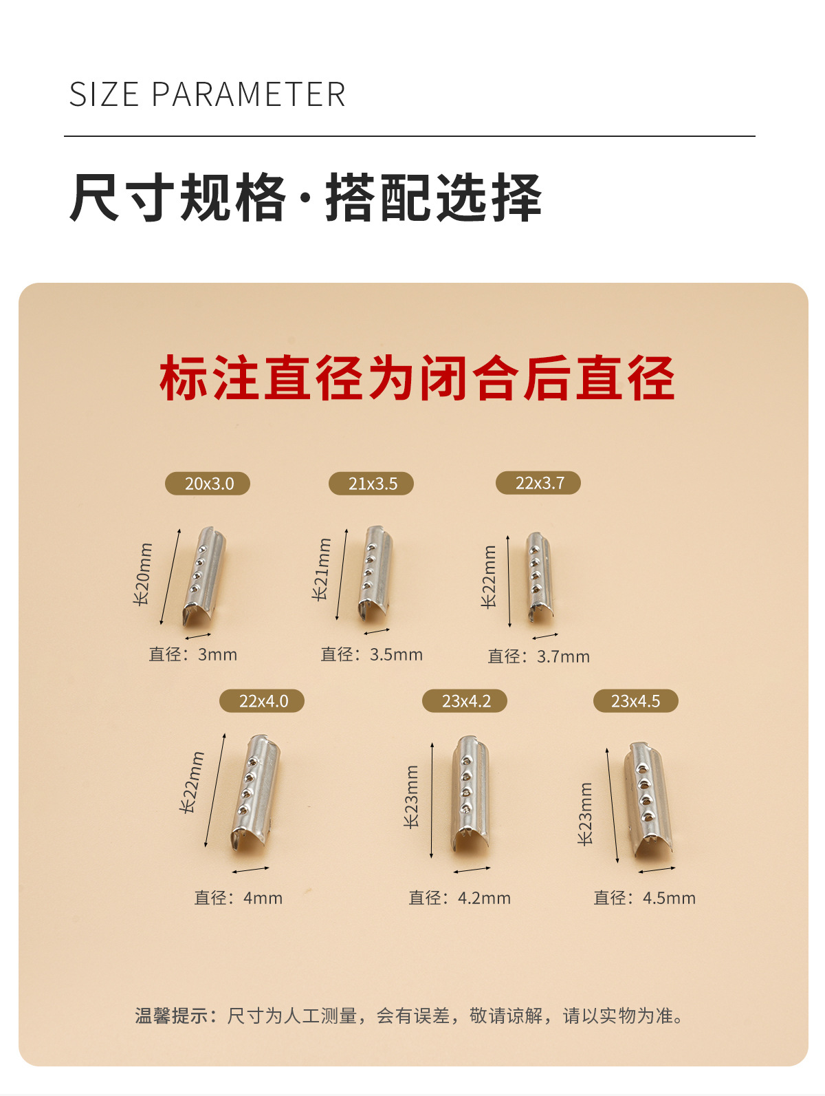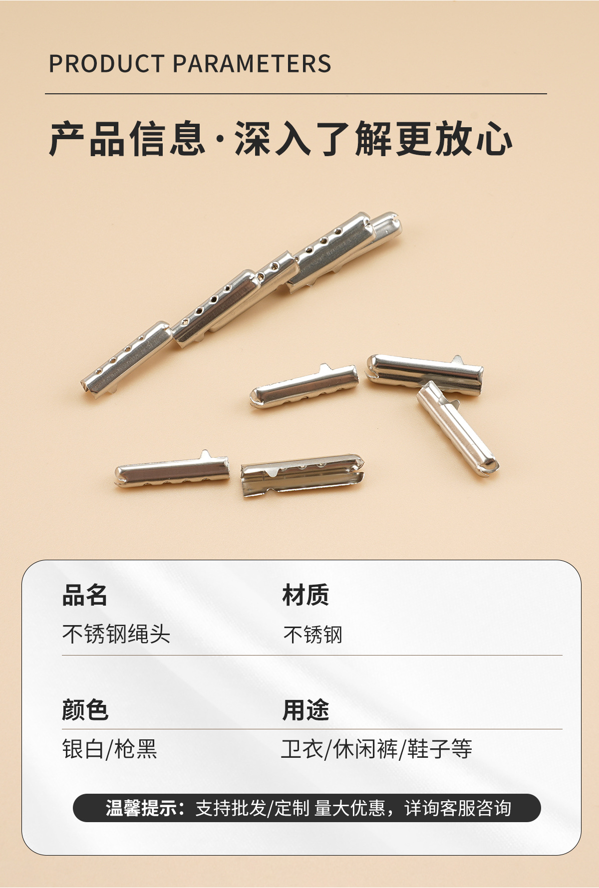 스테인레스 스틸 로프 헤드, 바지 허리 로프 헤드, 의류 가방 하드웨어, 신발 끈, 캐주얼 의류 및 모자, 금속 오픈 총알
