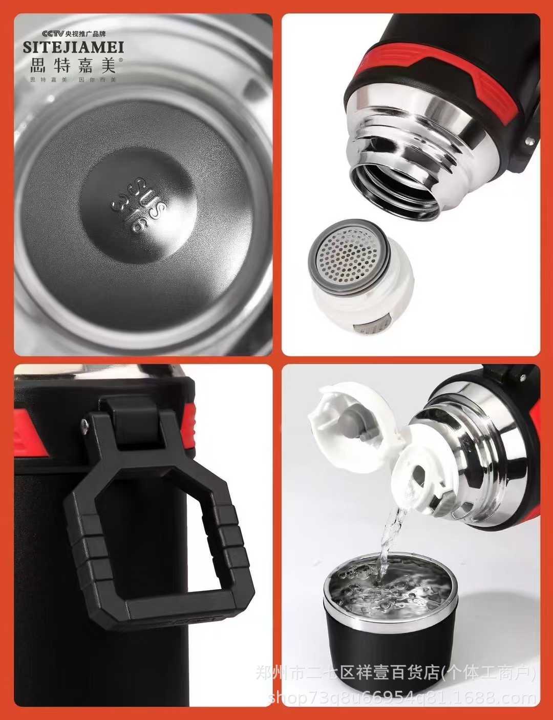Sitejiamei 등산 기계 주전자 1000ml 대용량 스테인레스 스틸 야외 등산 휴대용 절연 주전자 도매스토어 가기