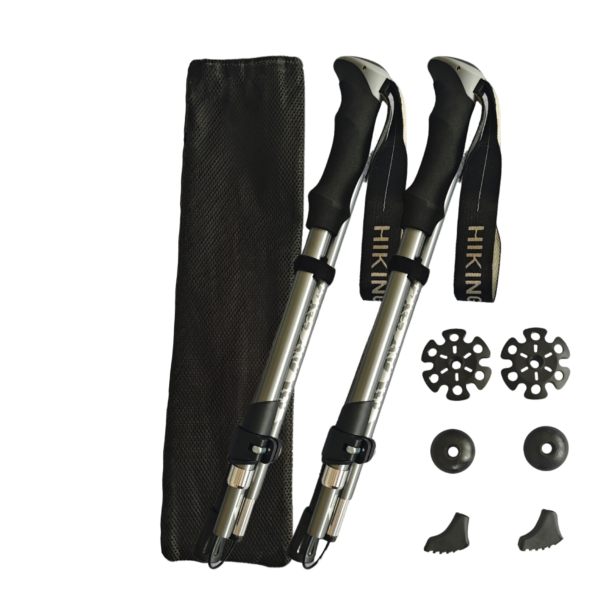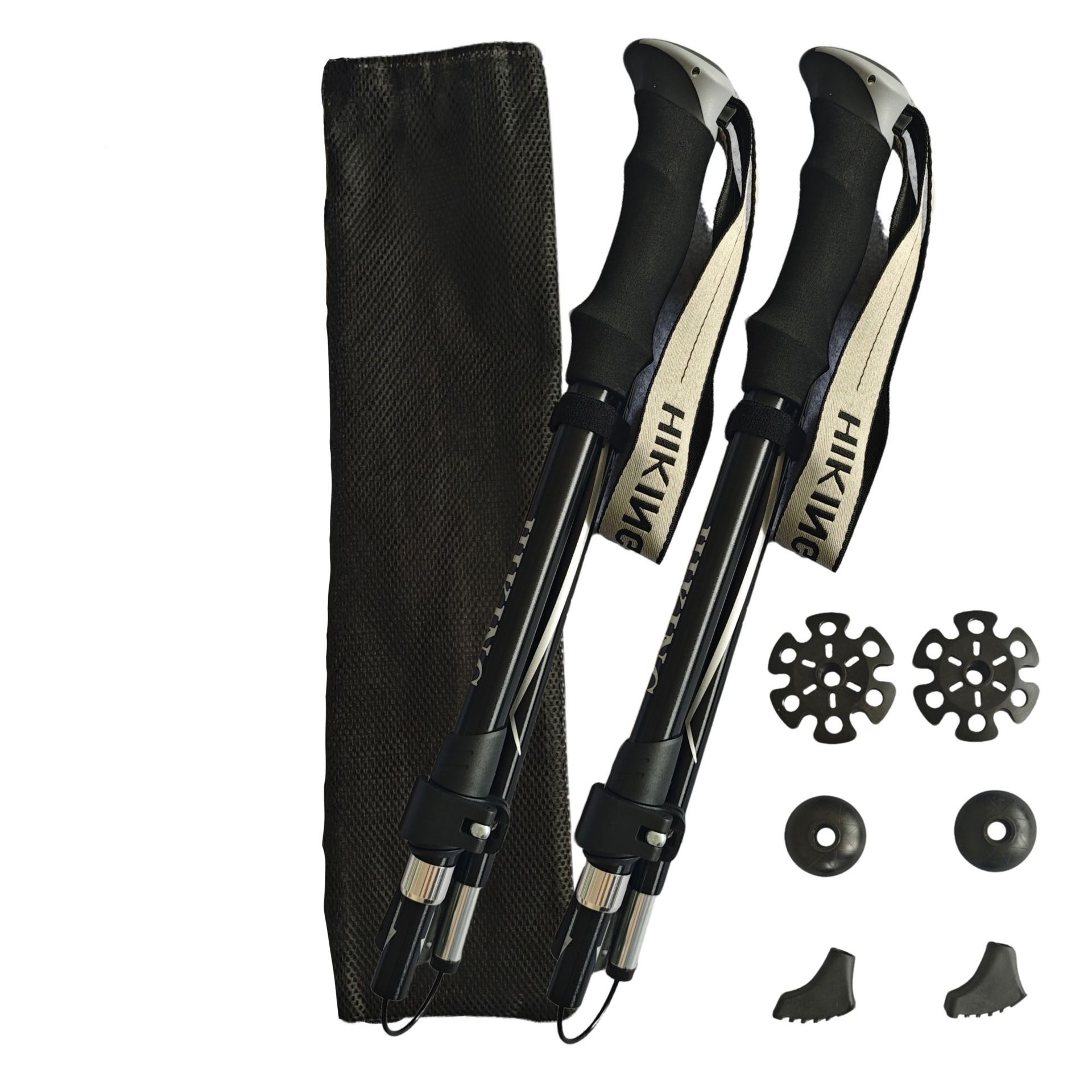 2색 헤드 외부 잠금 접이식 하이킹 스틱 세트(액세서리 포함) 범용 야외 캠핑 장비