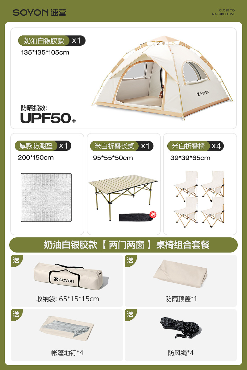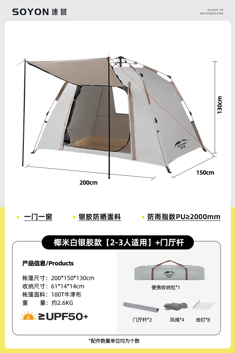 SOYON 속성 텐트 야외 휴대용 접이식 야외 캠핑 빠른 오픈 캠핑 장비 세트 2025 Zhanchi