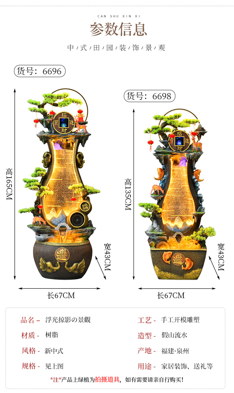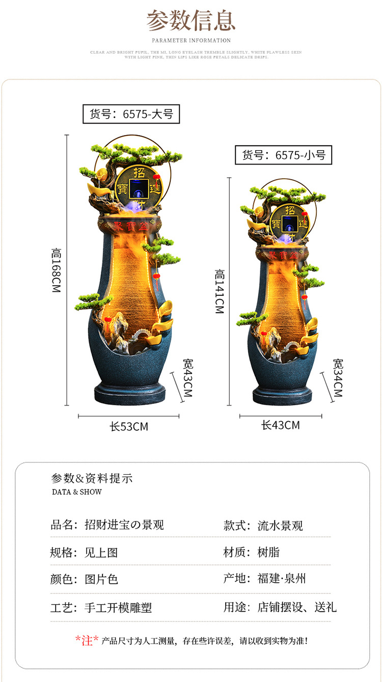 가짜 바위 분수 조롱박 흐르는 물 장식품 순환 물 수조 거실 사무실 행운 바닥 장식 풍경 선물스토어 가기