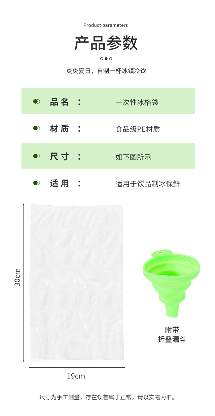 • 깔때기가 포함된 얼음 트레이 봉지 30개
