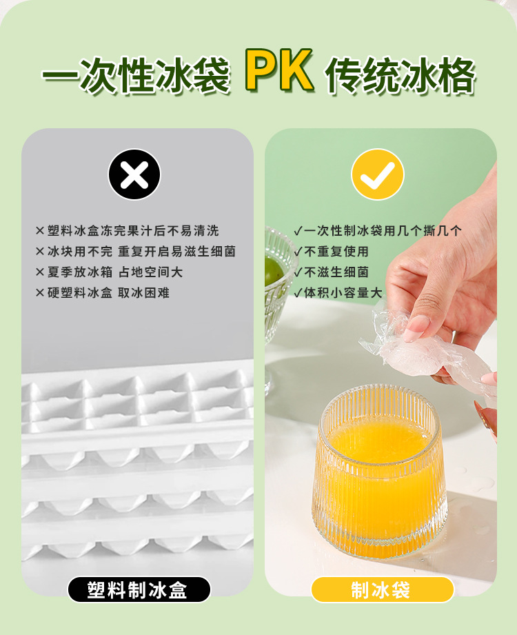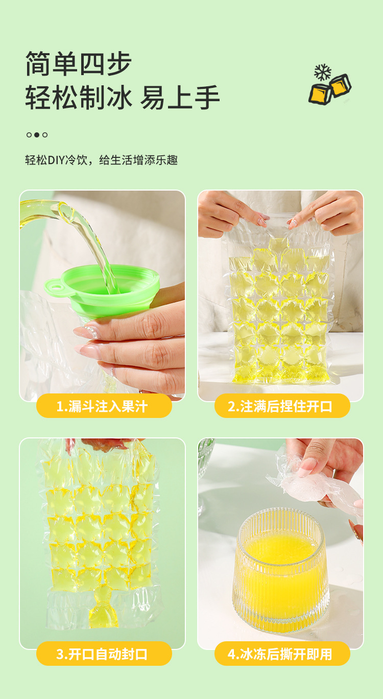 일회용 얼음주머니, 물이 가득한 얼음주머니, 두꺼운 제빙기, 얼음틀, 손으로 찢을 수 있는 얼음, 자동 밀봉 얼음주머니
