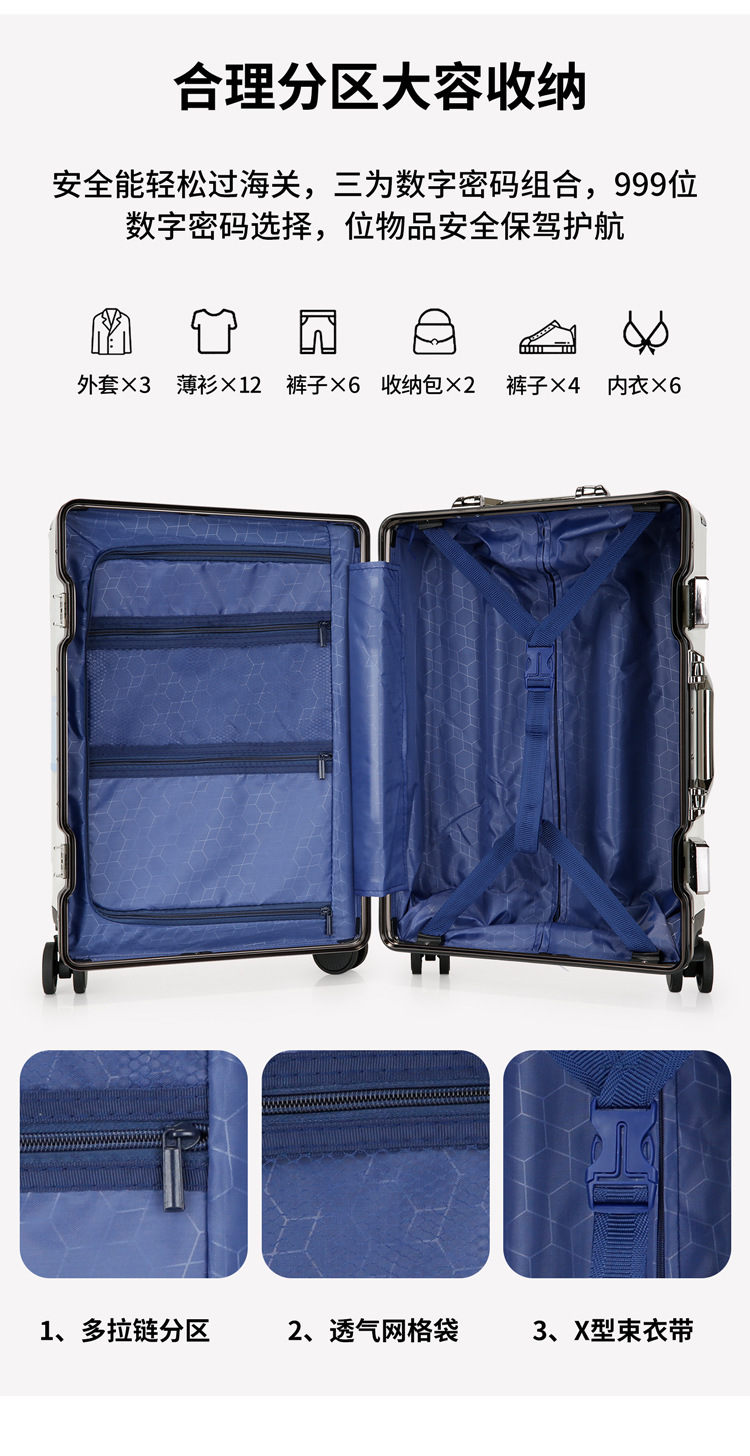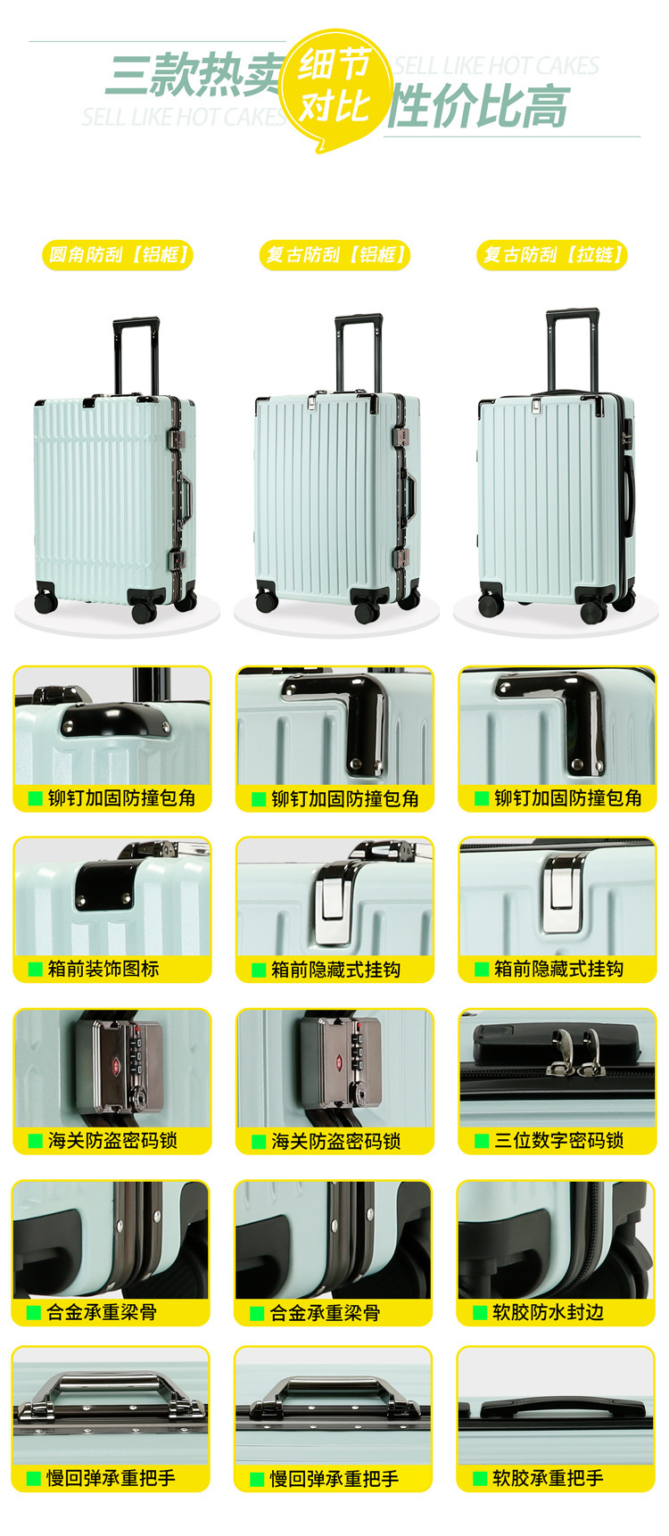 범용 휠이 있는 엄선된 고급 알루미늄 프레임 여행가방, 트롤리 케이스, 학생 여행용 코드 박스, 비즈니스 탑승 가방 도매스토어 가기