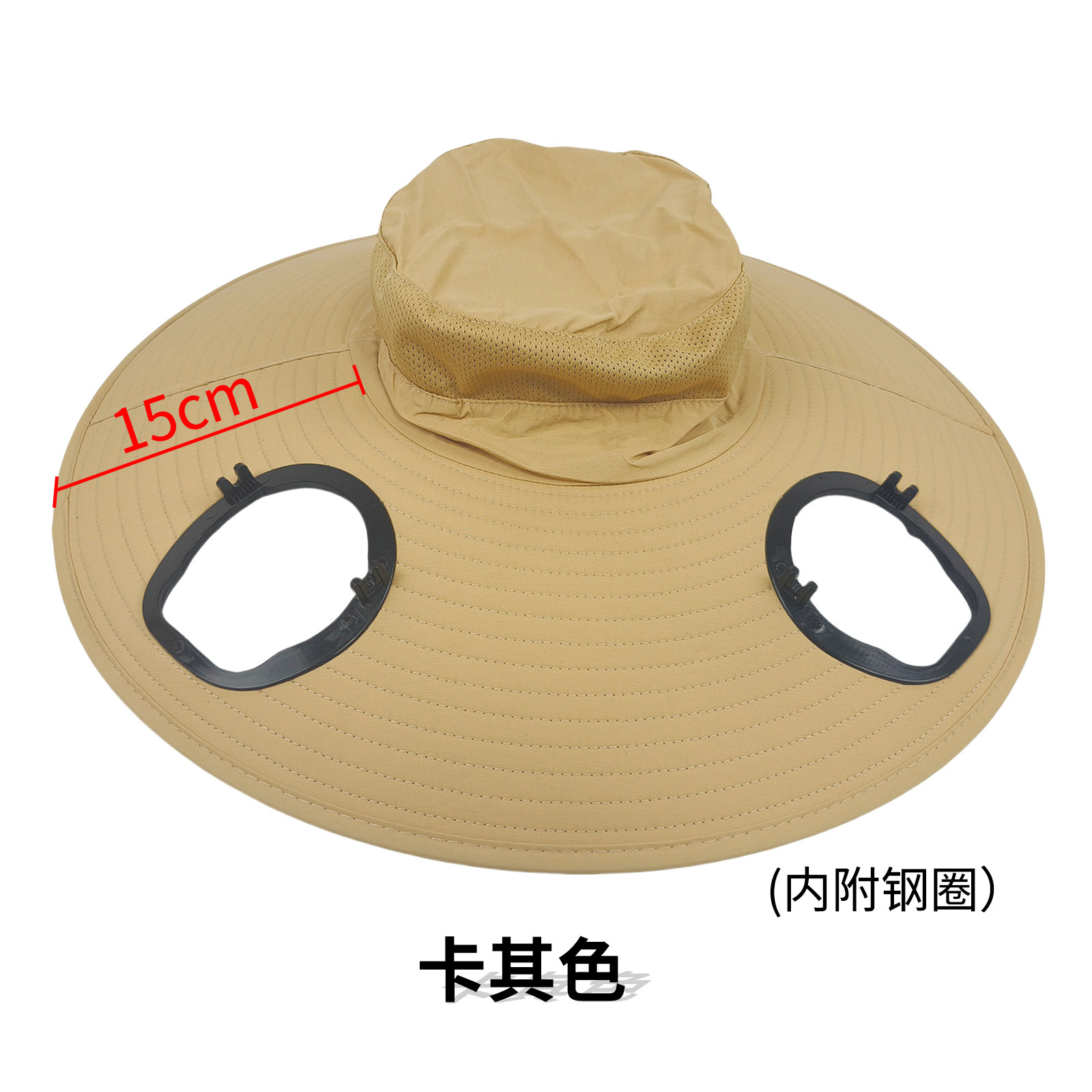 • 솔리드 컬러 카키색 15cm 챙 와이어 스타일 + 800mAh 듀얼 팬