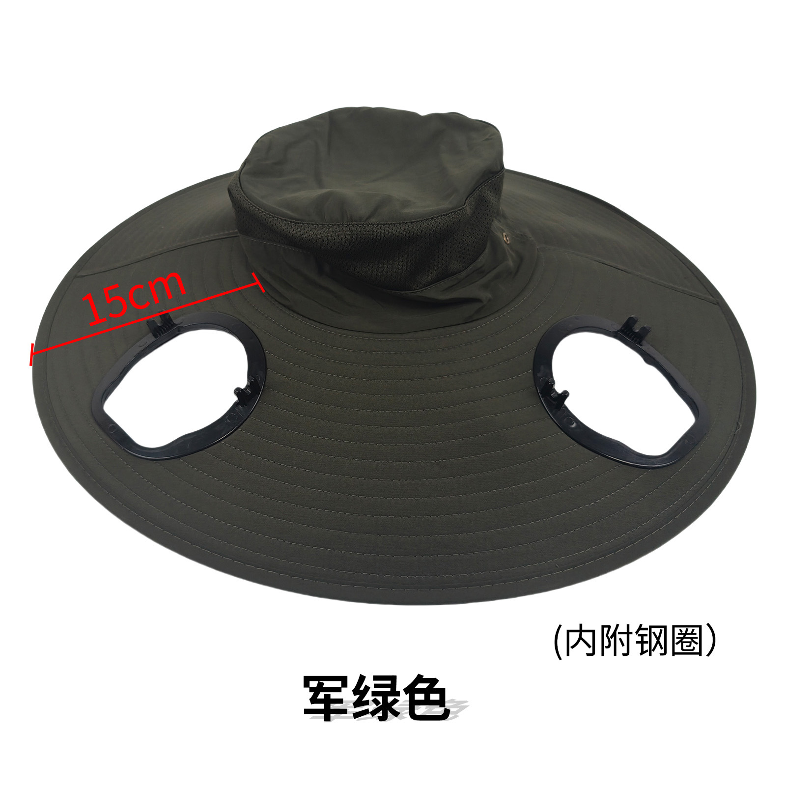 • 단색 밀리터리 그린 15cm 모자 챙 강철 와이어 스타일 + 800mAh 듀얼 팬