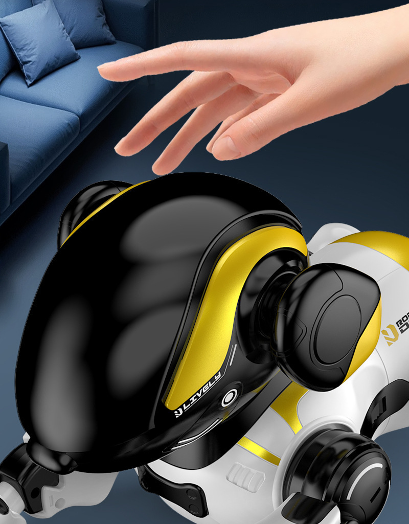 产品功能:产品为语音机器狗,配置遥控器,可以控制前进,倒立,问好 坐下,趴下,睡觉,俯卧撑,灵活动作,一身精彩本领,语音控制,撒娇 ,讲故事,跳舞,讲英语 模仿秀,歌曲 .趣味编程,乐趣多多