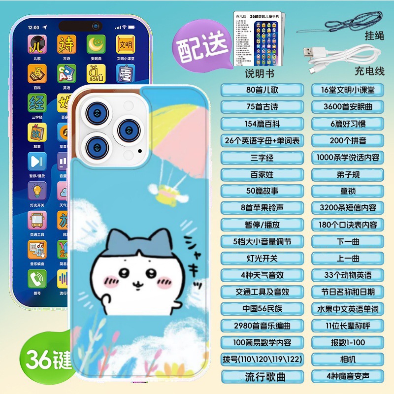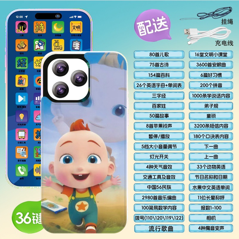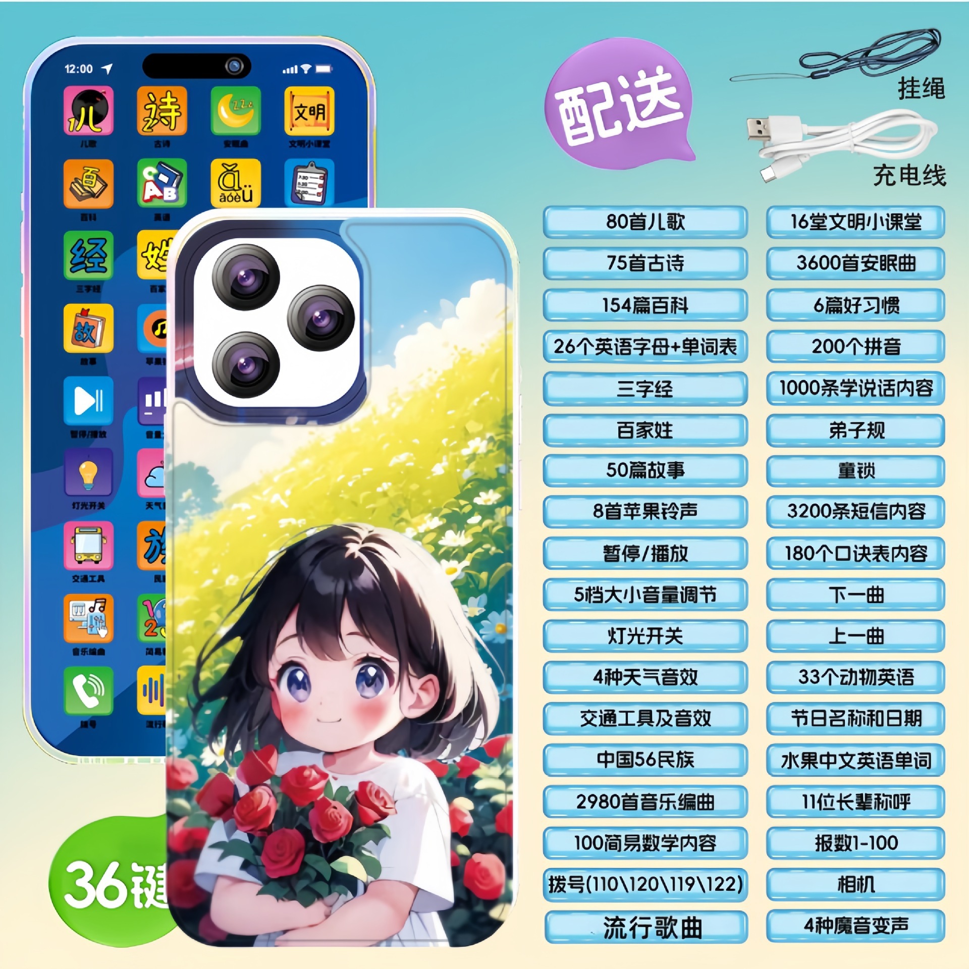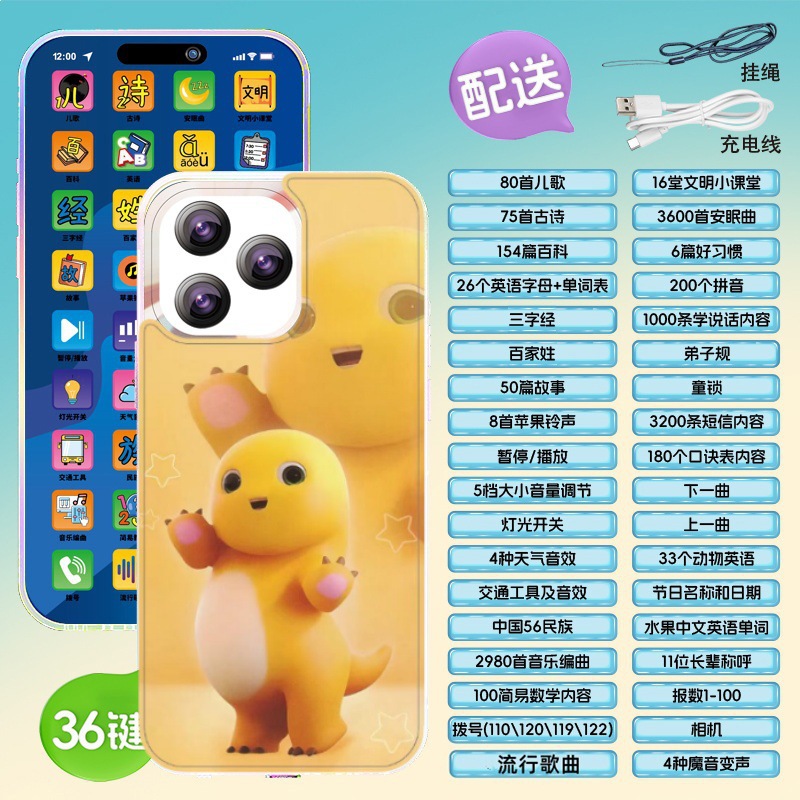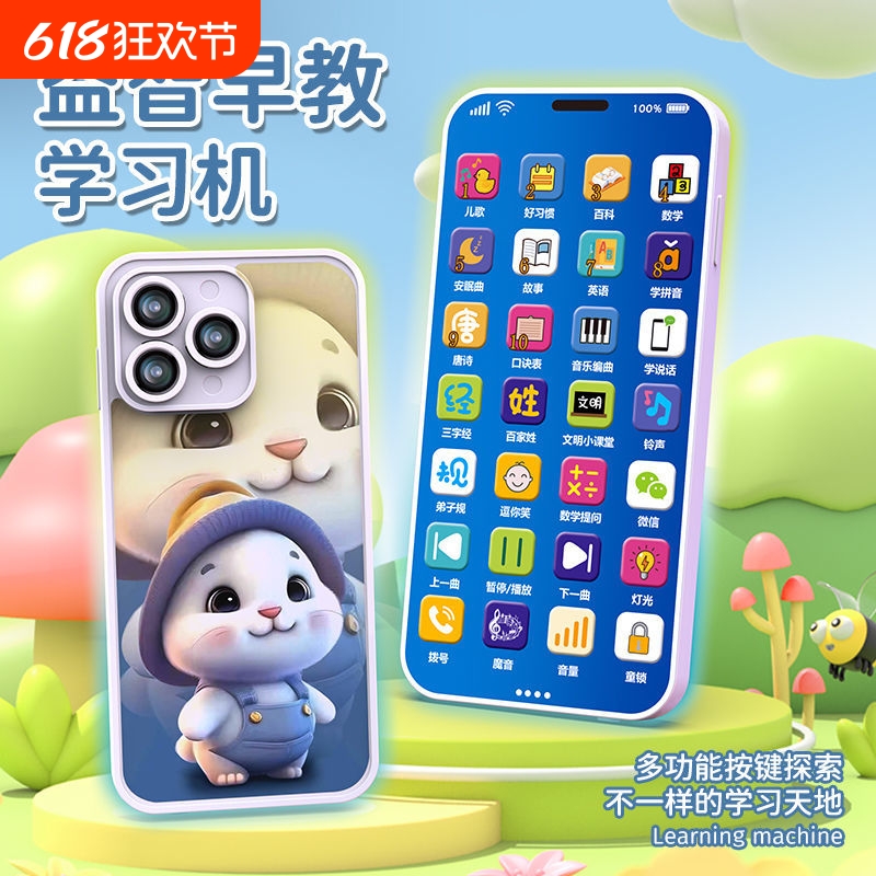 충전식 스토리 머신 아기 시뮬레이션 전화 터치 스크린 아기 교육 조기 교육 기계 모델 어린이 휴대 전화 장난감스토어 가기