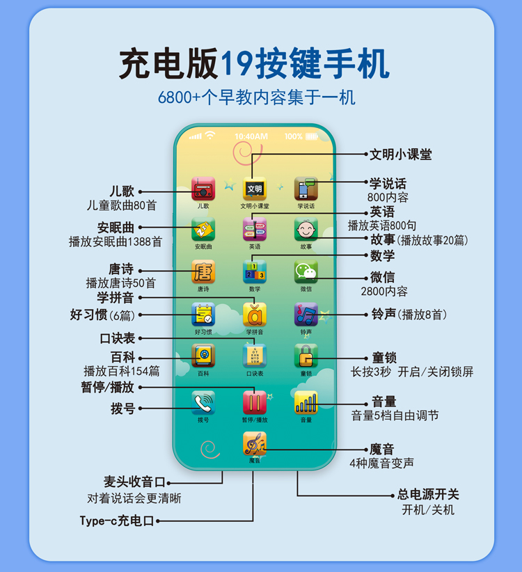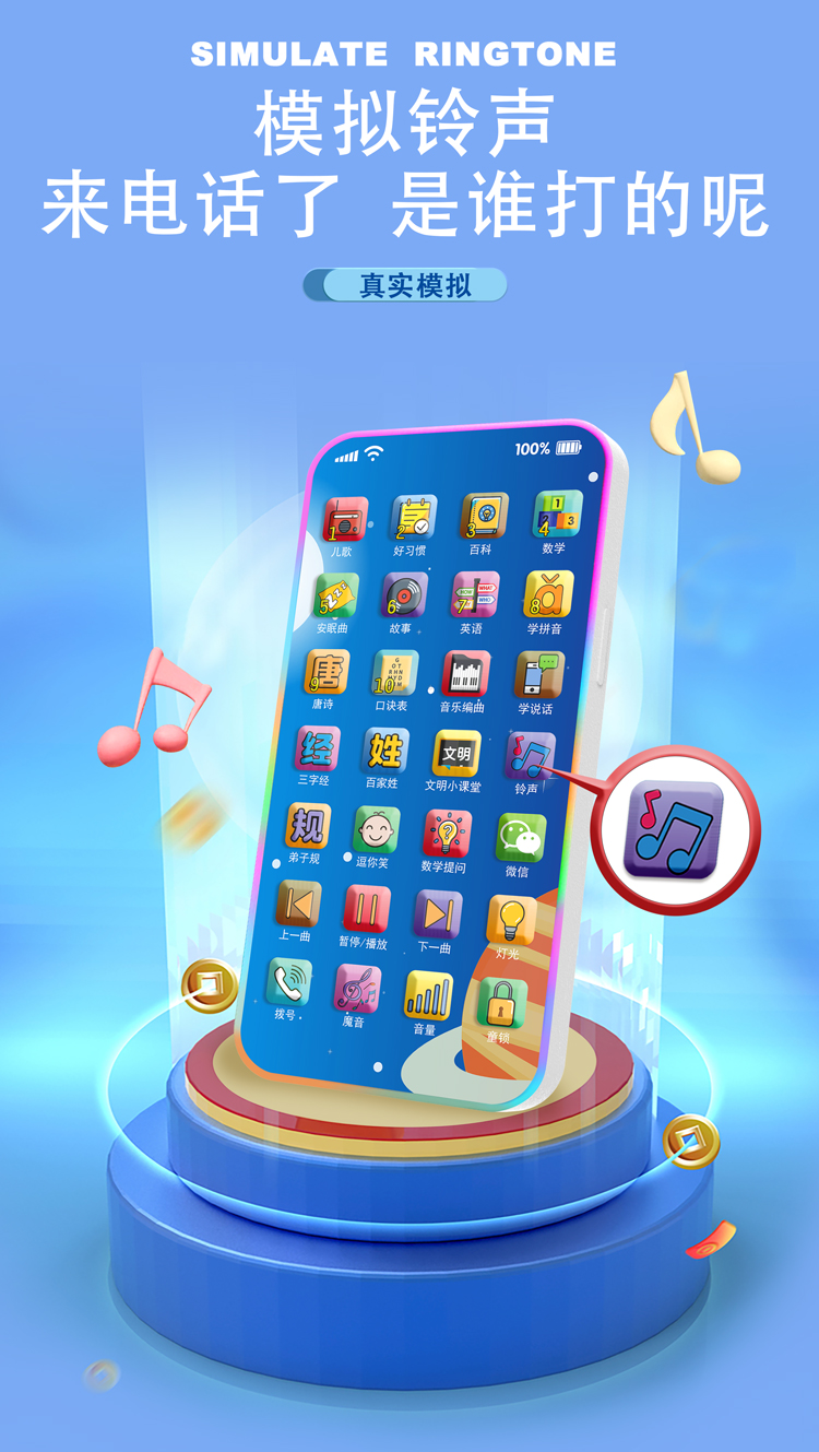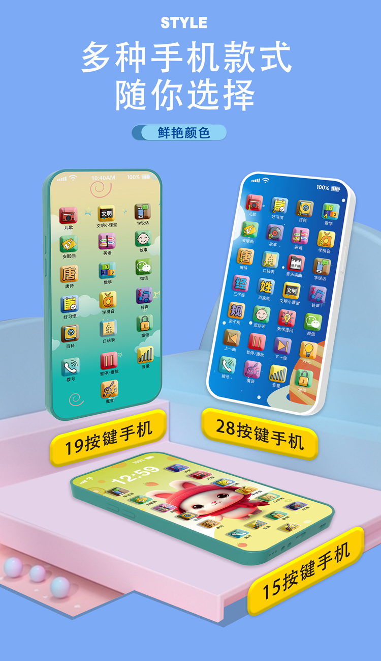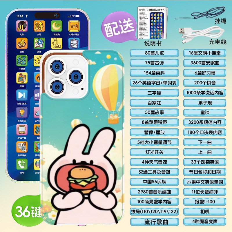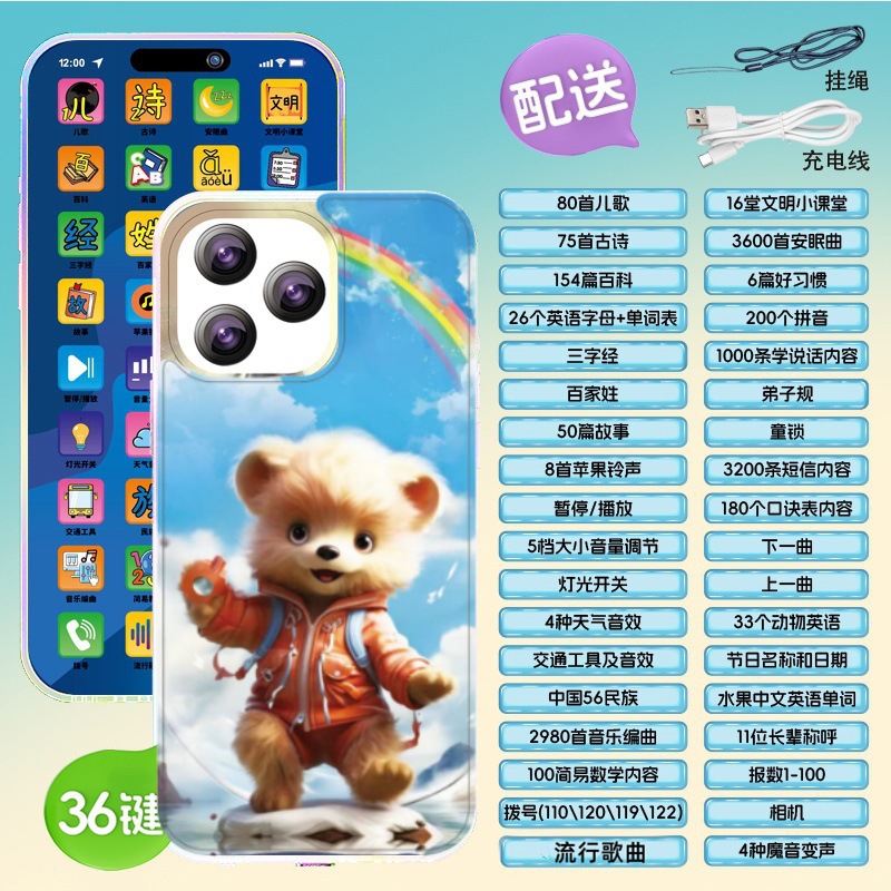 충전식 스토리 머신 아기 시뮬레이션 전화 터치 스크린 아기 교육 조기 교육 기계 모델 어린이 휴대 전화 장난감스토어 가기