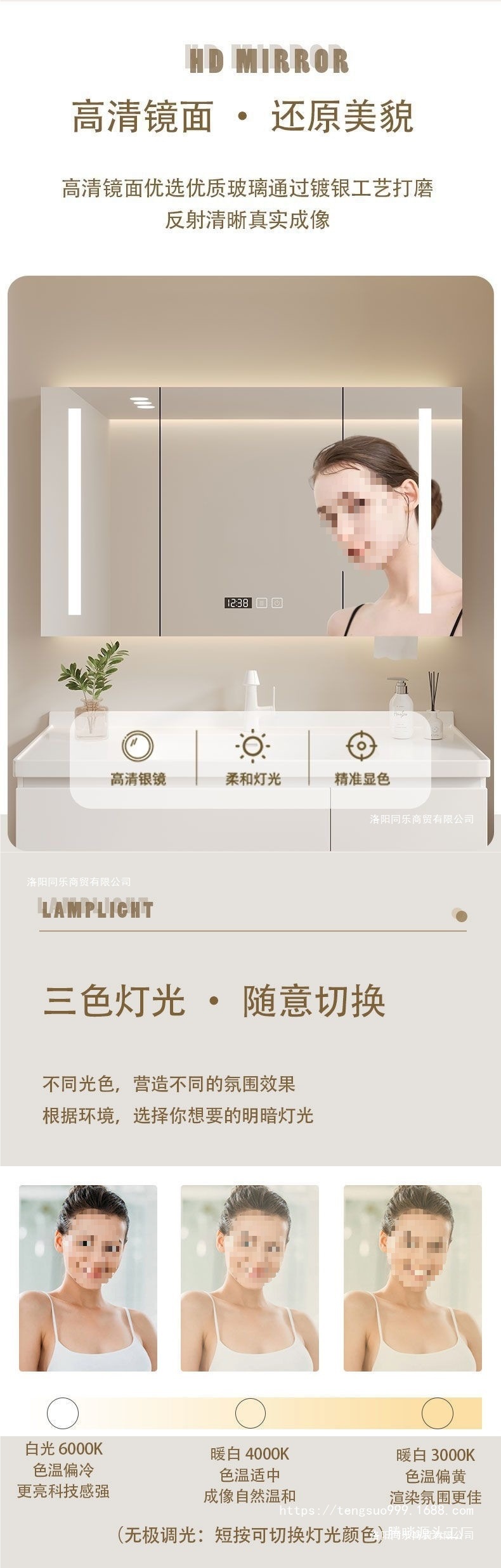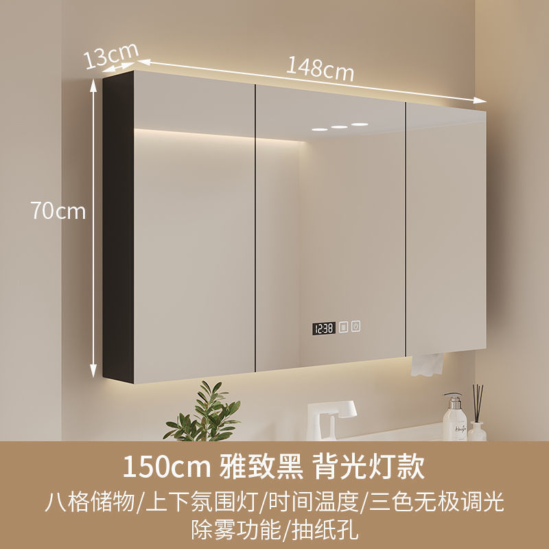 스마트 개별 거울 캐비닛 욕실 벽걸이 형 수납 선반 단단한 목재 욕실 수납 캐비닛 조명 수납 선반이있는 화장 거울