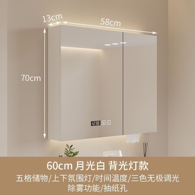 스마트 개별 거울 캐비닛 욕실 벽걸이 형 수납 선반 단단한 목재 욕실 수납 캐비닛 조명 수납 선반이있는 화장 거울스토어 가기