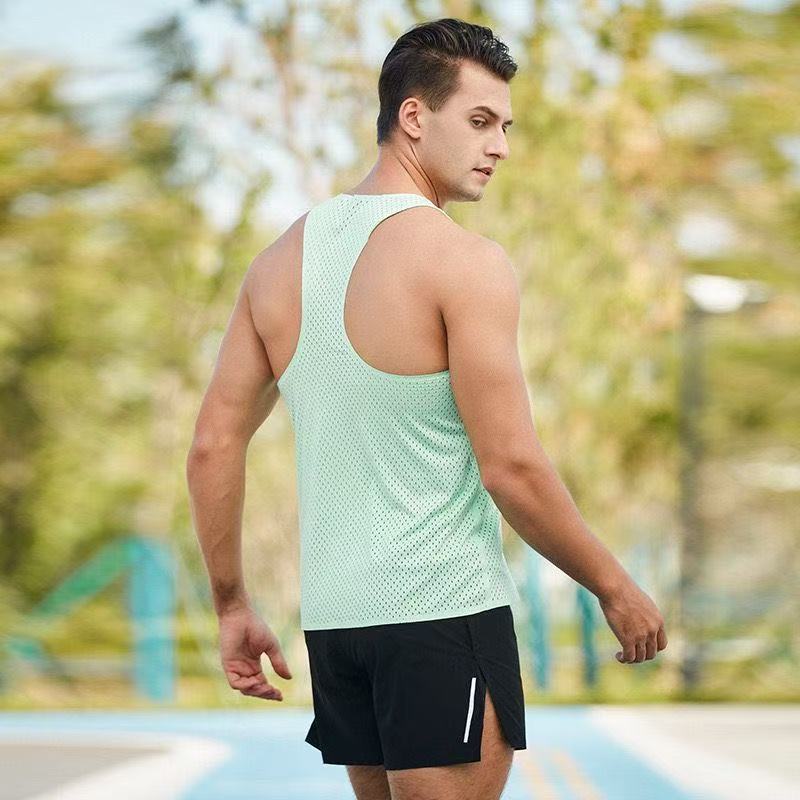 마라톤 러닝 속건 조끼 남자 스포츠 육상 크로스 컨트리 훈련 경량 풍동 조끼 메쉬 레이싱 조끼