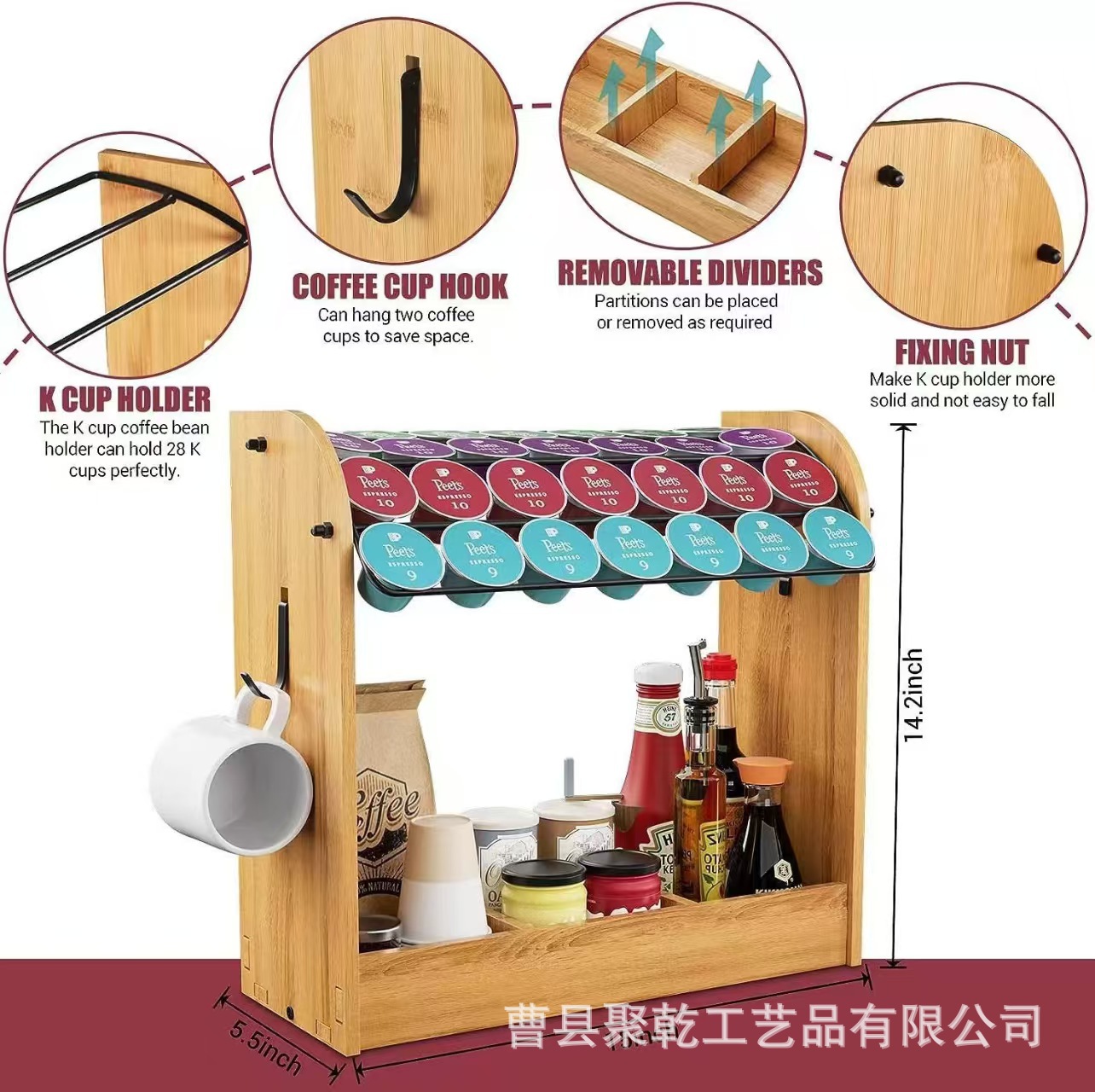 나무 커피 캡슐 보관함 다층 티룸 티백 커피백 보관함 단단한 나무 일회용 종이컵 홀더