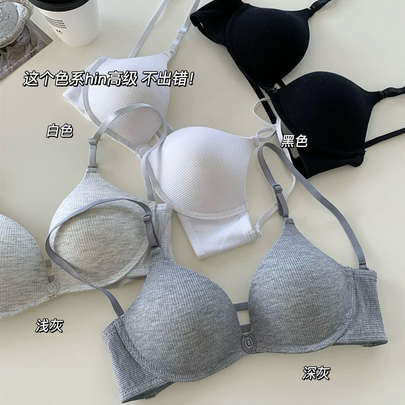 프렌치 스타일 무봉제 등 노출형 U자형 여름 속옷, 앞후크 디자인으로 컵이 빈틈없이 고정되고, 푸쉬업 효과가 있는 순수하고 섹시한 브라스토어 가기