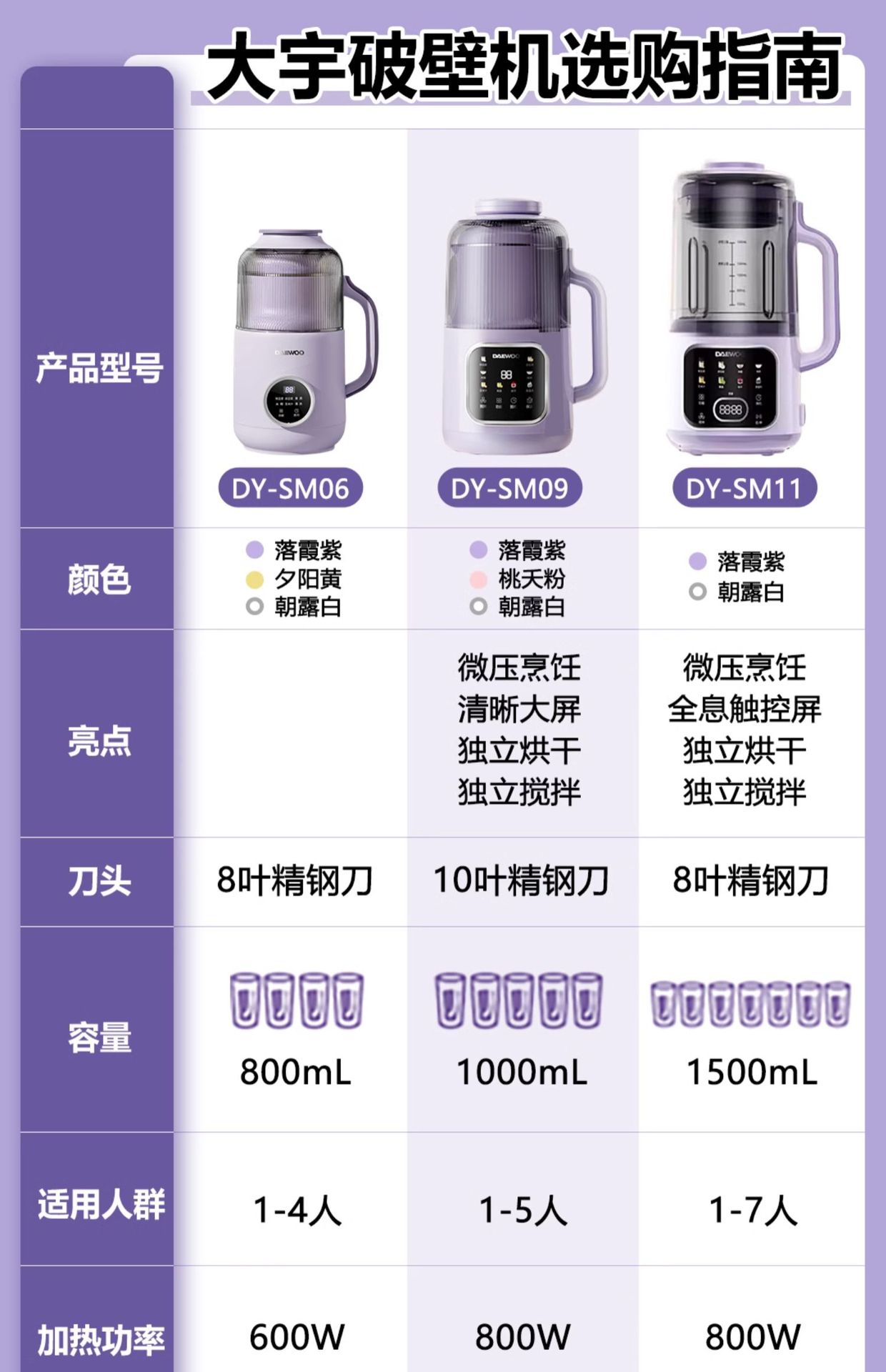 • 선명한 대형 화면 - 미세압력 향조림 - 차음창고 보라색 - 1000ml