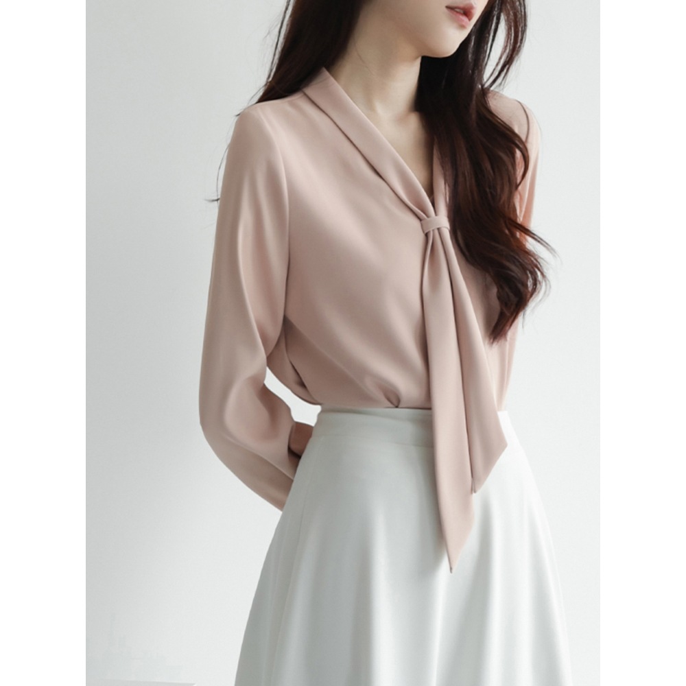 직업적인 통근 부드러운 스타일 핑크 리본 셔츠 여성 봄 새로운 지적 우아한 기질 긴팔 탑스토어 가기