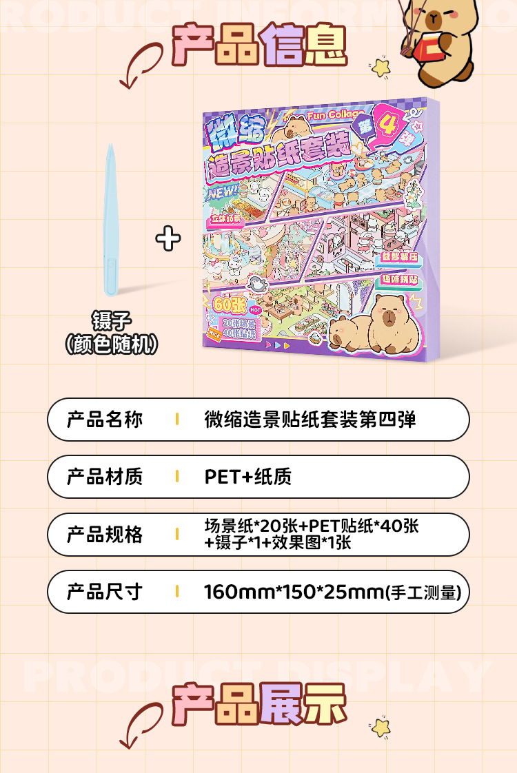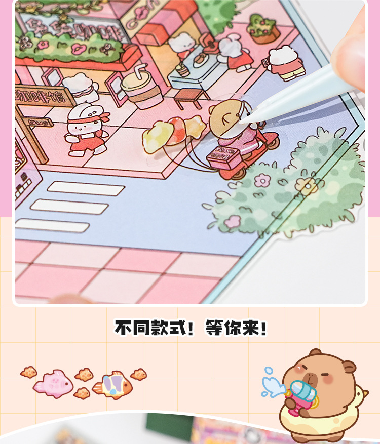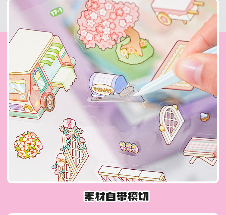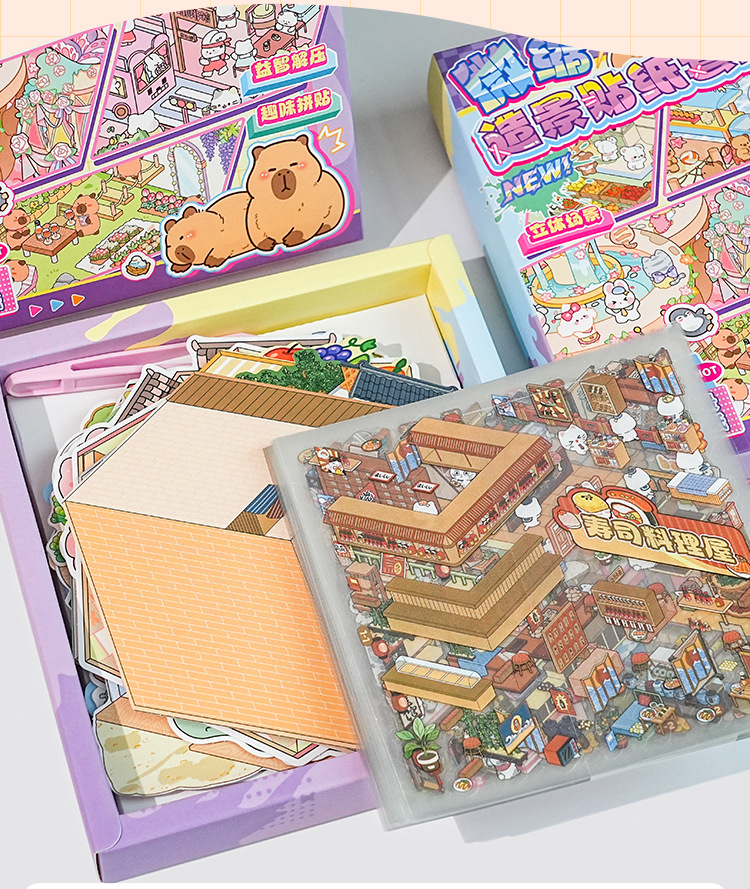 오리지널 미니어처 조경 스티커 세트 4차 창의적인 3D 입체 오두막 어린이용 절단 없는 스티커 장난감스토어 가기