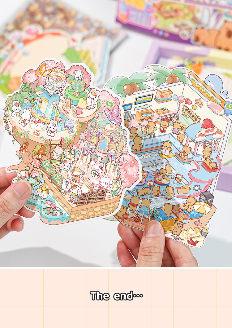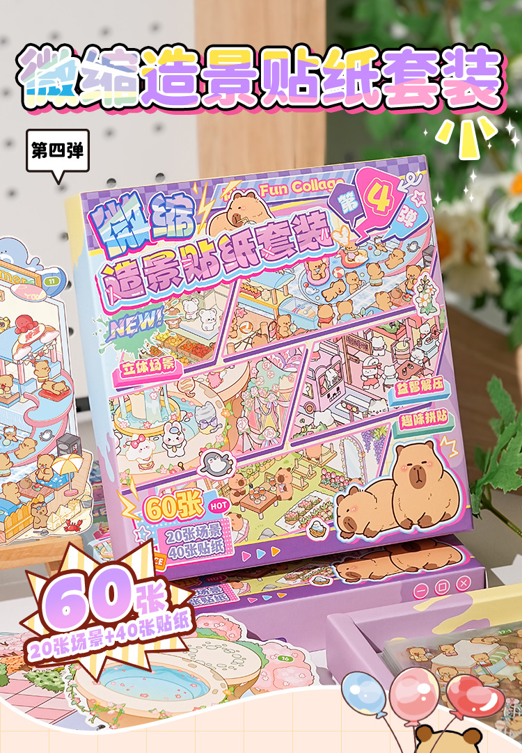 오리지널 미니어처 조경 스티커 세트 4차 창의적인 3D 입체 오두막 어린이용 절단 없는 스티커 장난감