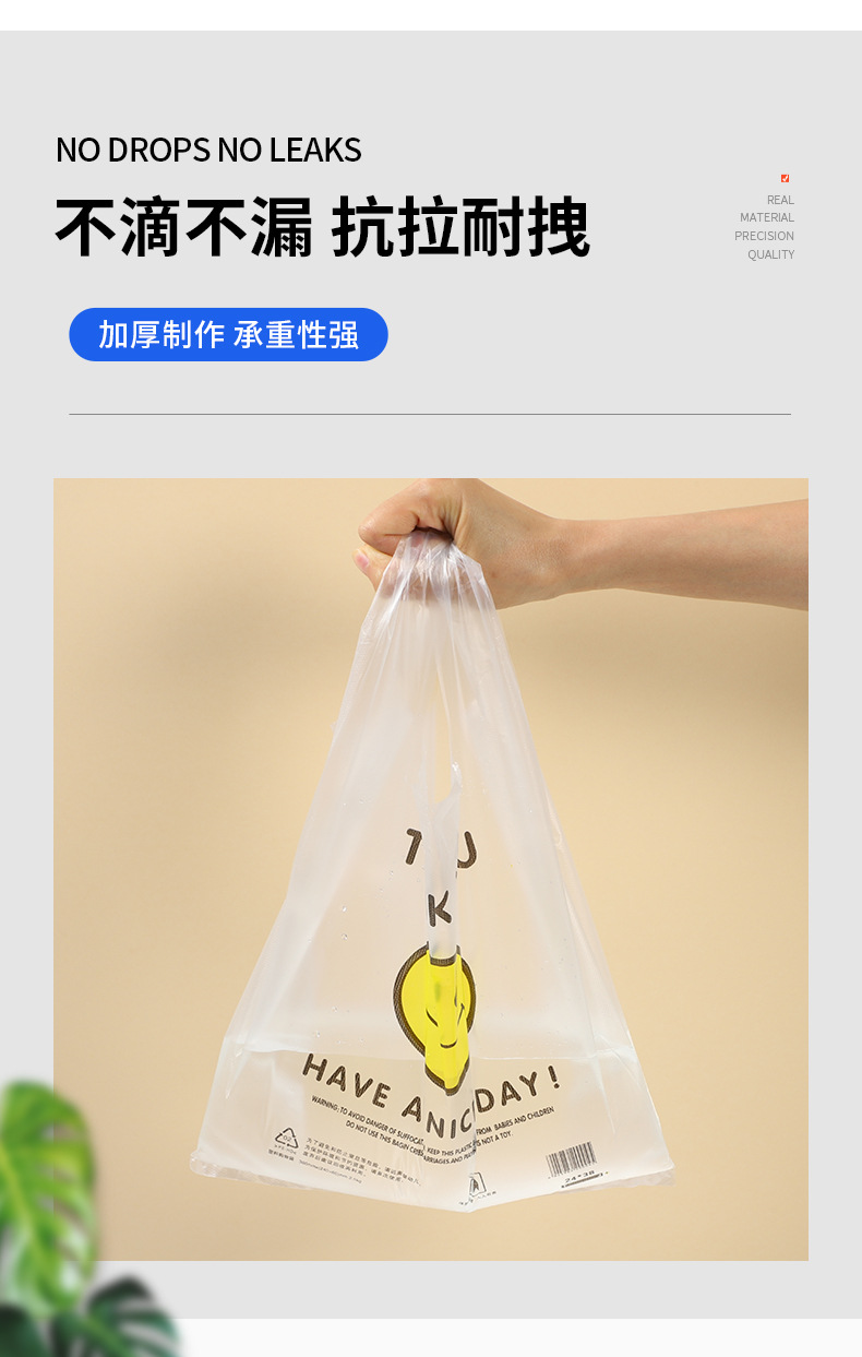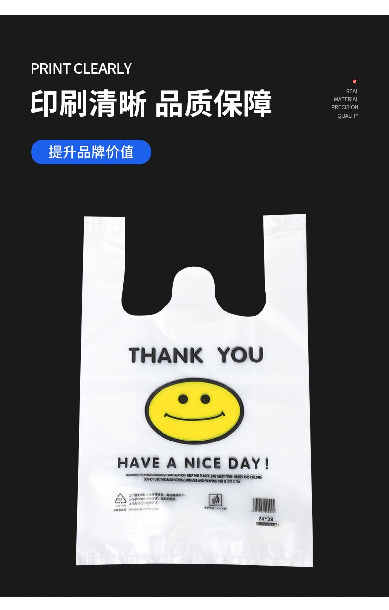 투명 웃는 얼굴 가방 비닐 봉투 테이크 아웃 포장 슈퍼마켓 쇼핑백 두꺼운 플라스틱 휴대용 조끼 포장 가방 도매스토어 가기