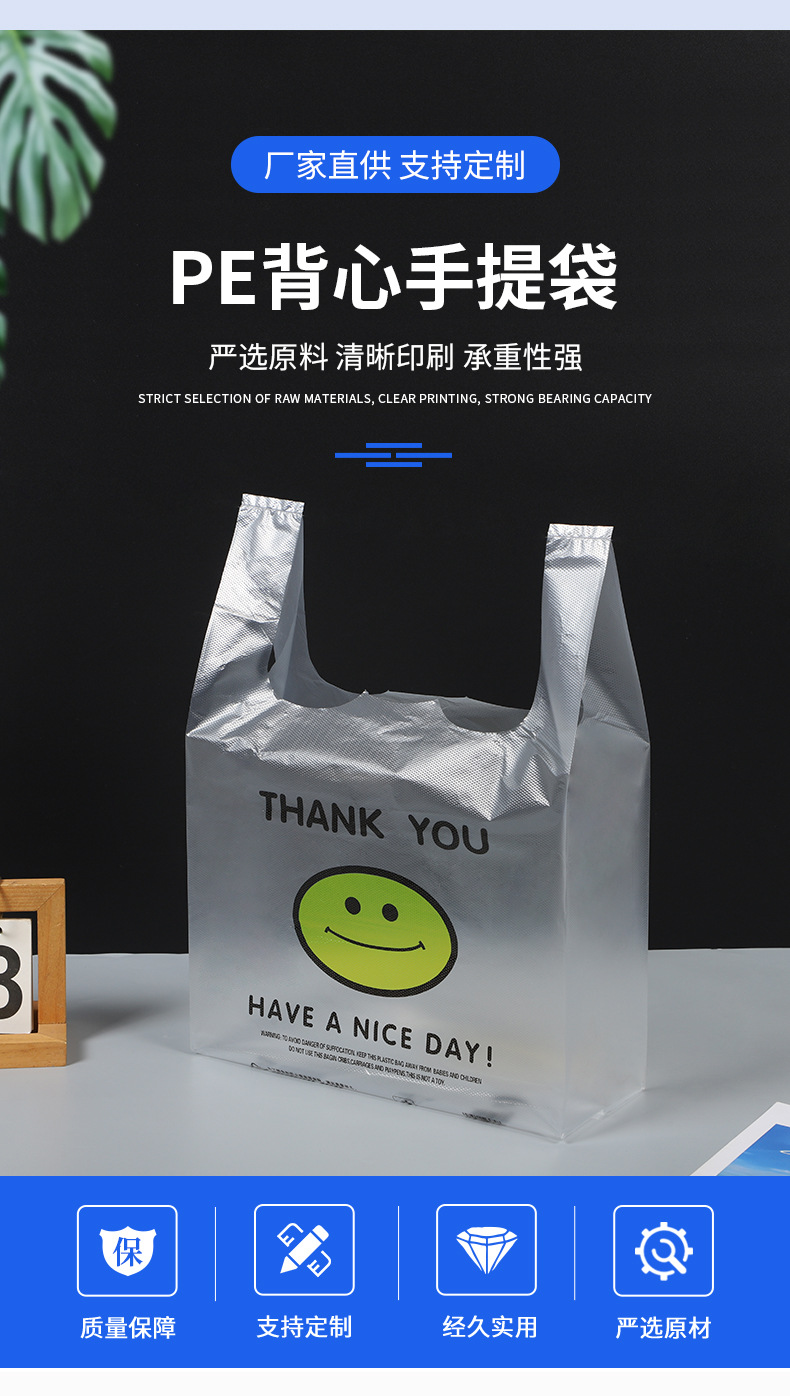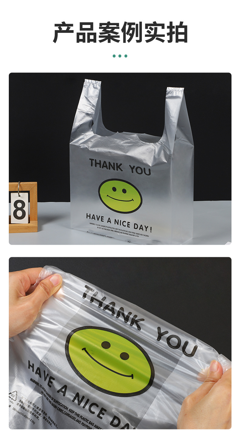 투명 웃는 얼굴 가방 비닐 봉투 테이크 아웃 포장 슈퍼마켓 쇼핑백 두꺼운 플라스틱 휴대용 조끼 포장 가방 도매