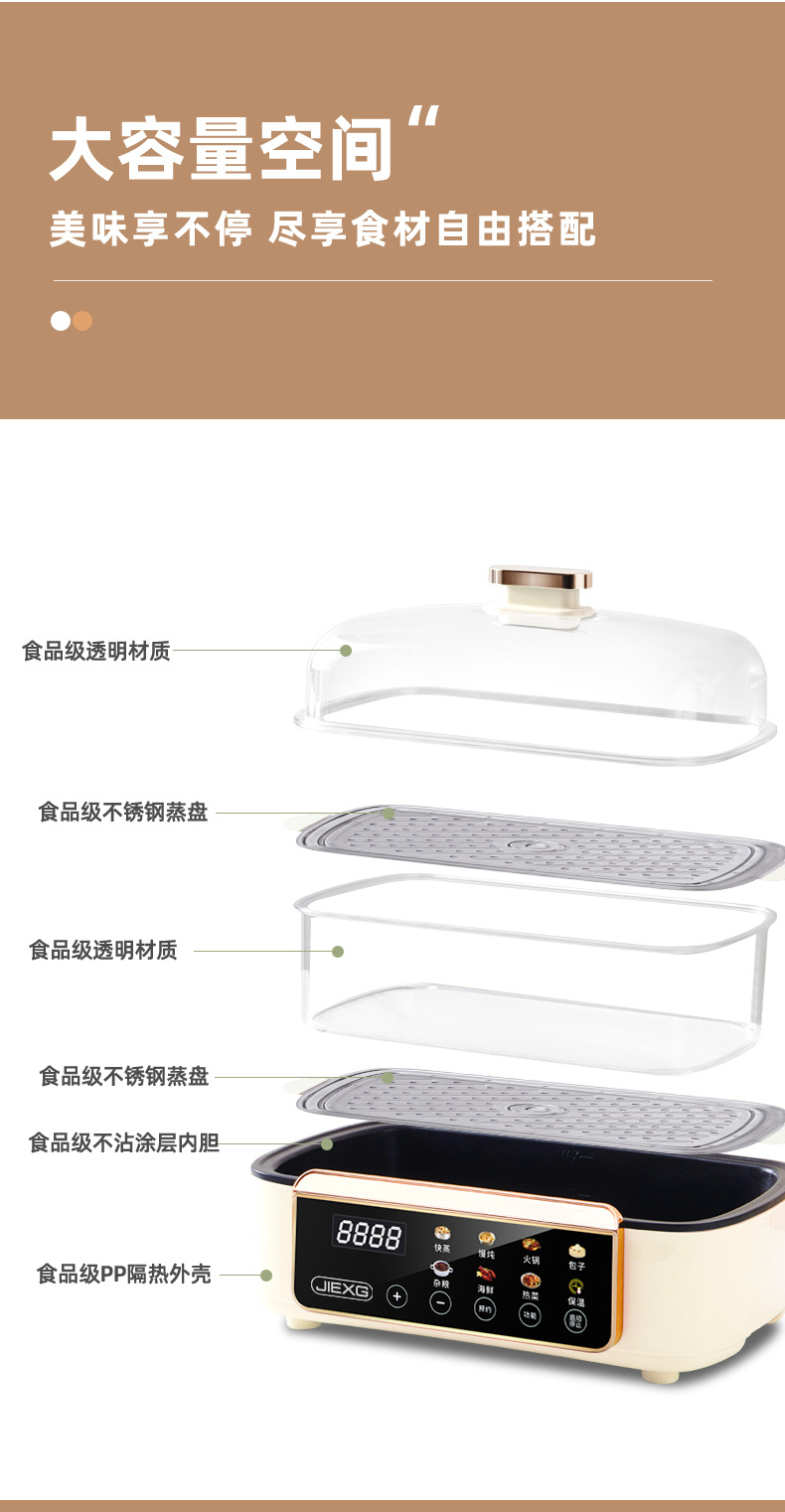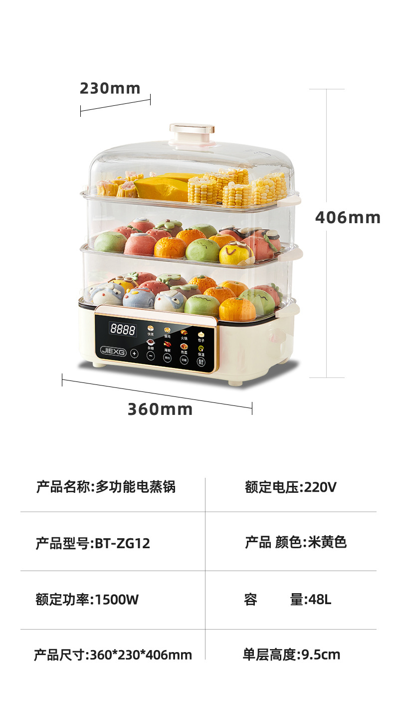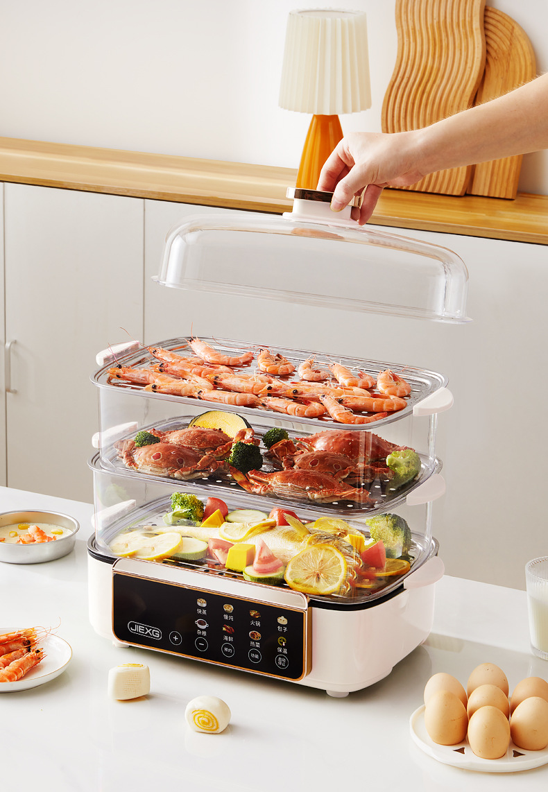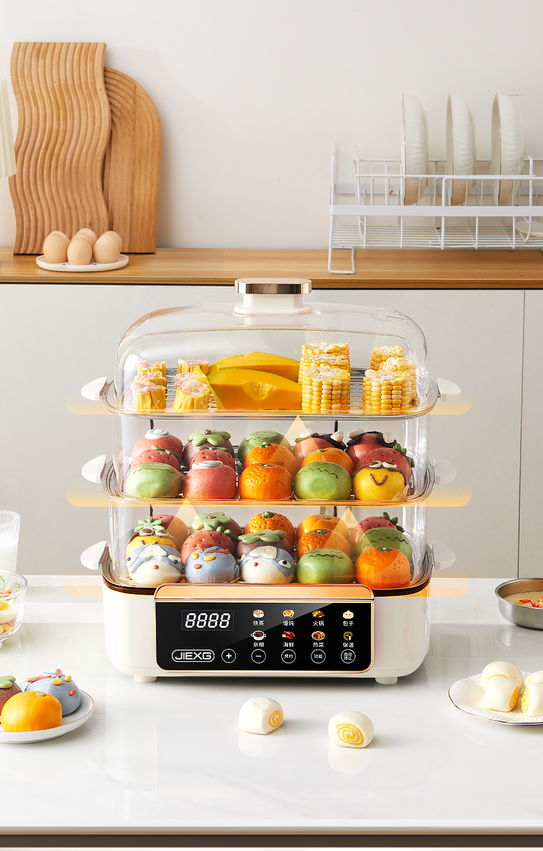 독일 JIEXG 전기 찜통 가정용 3단 찜통 대용량 다기능 예약 가능한 찜 및 조리 일체형 아침 식사 기계