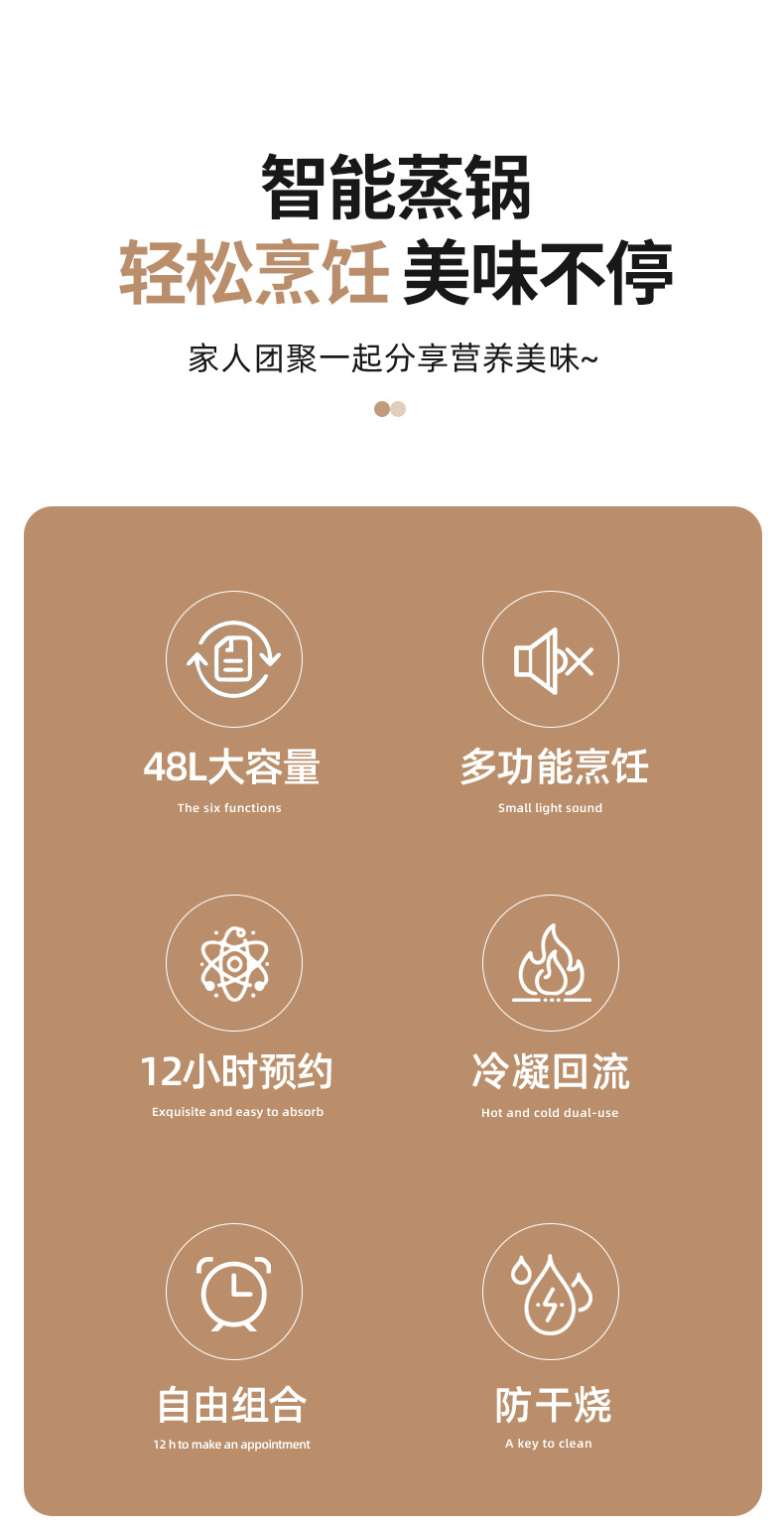 • "스마트 모델 48리터 용량 ""찜과 요리가 하나로""." ☆ 예약 가능한 보온 ★ 두꺼운 스테인레스 스틸 스팀 트레이