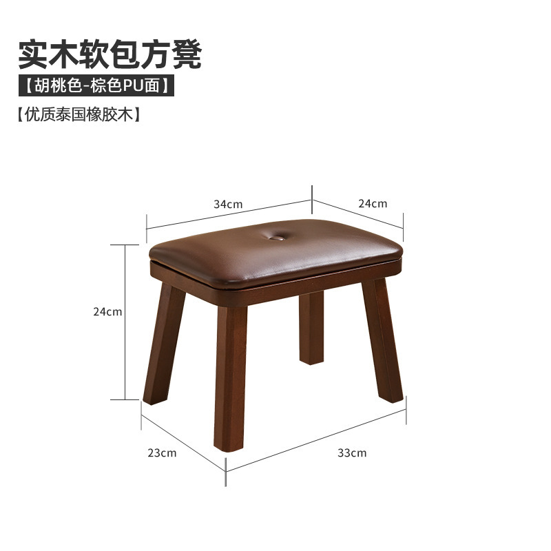 • 단단한 나무 너트 소프트 패키지 사각 스툴 | 호두색