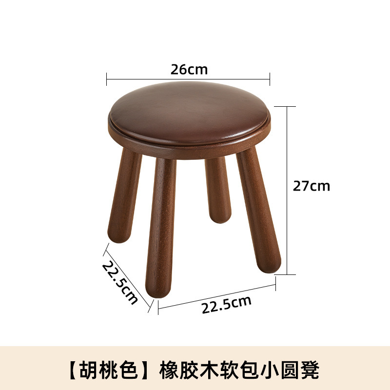 • 단단한 나무 너트 소프트 라운드 스툴 | 호두색