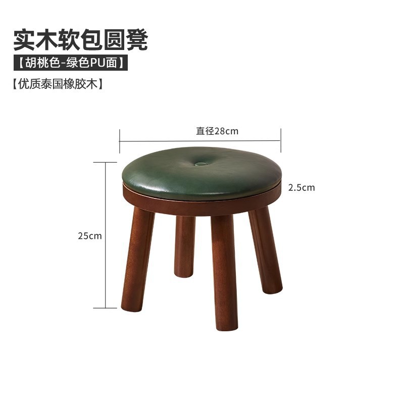 • 단단한 나무 너트 소프트 라운드 스툴 | 호두 녹색 국수