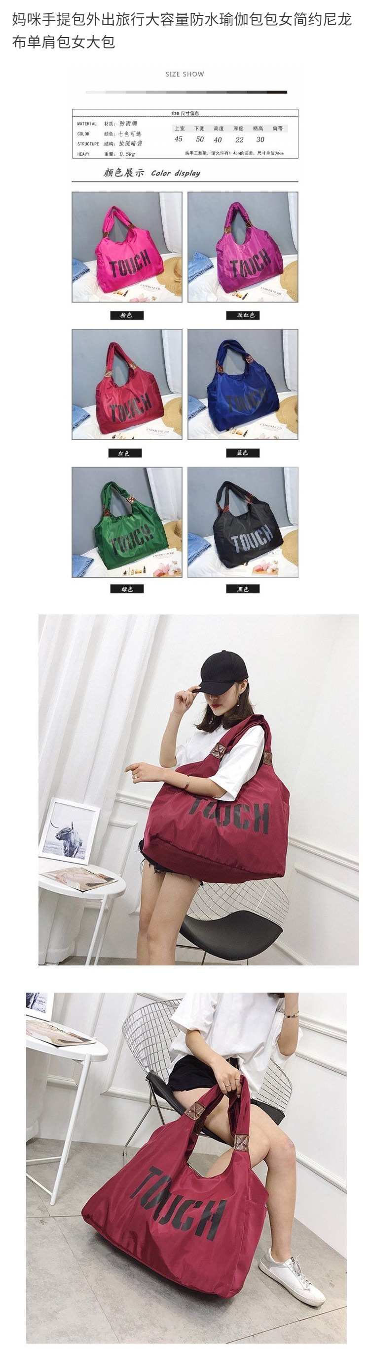 여행용 엄마 핸드백, 대용량 방수 요가 가방, 여성용 심플 나일론 천 숄더백, 여성용 대형 가방