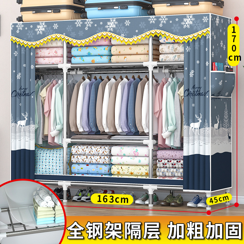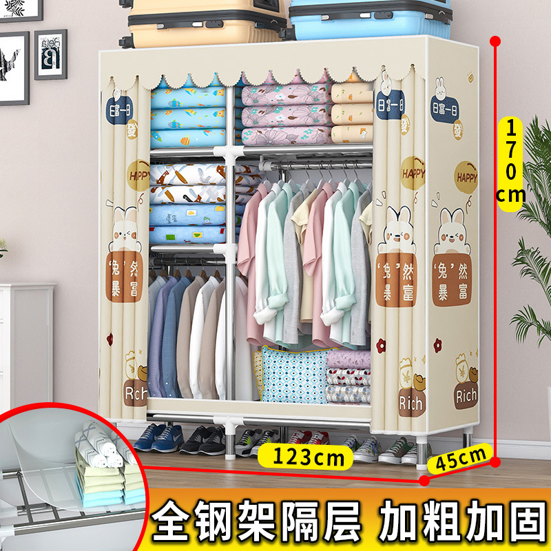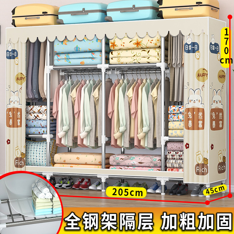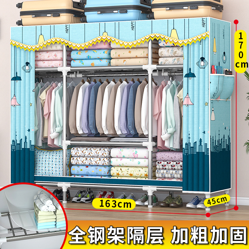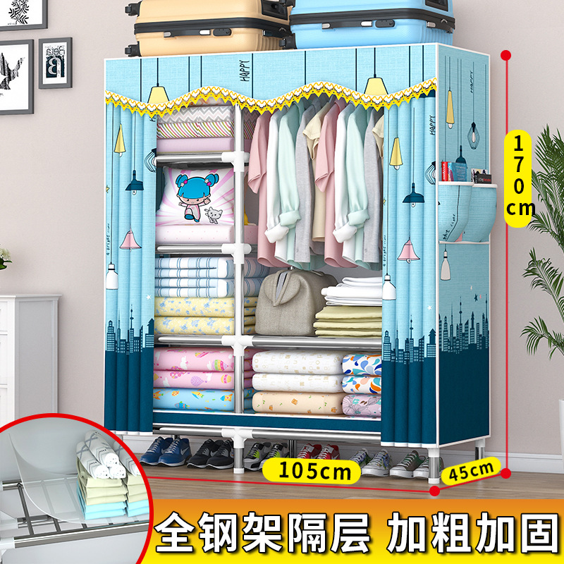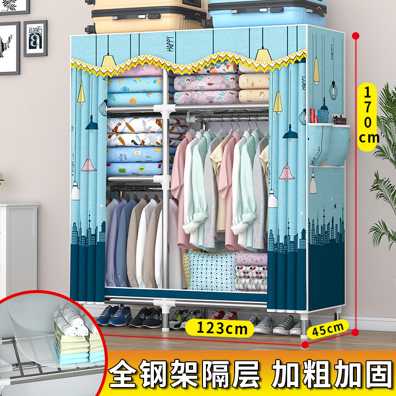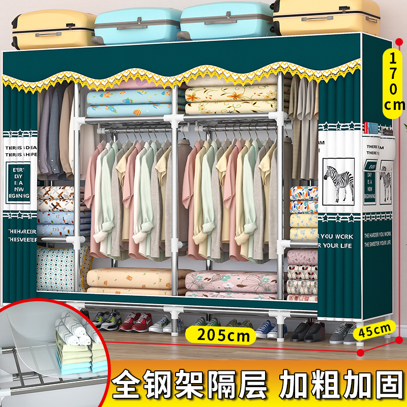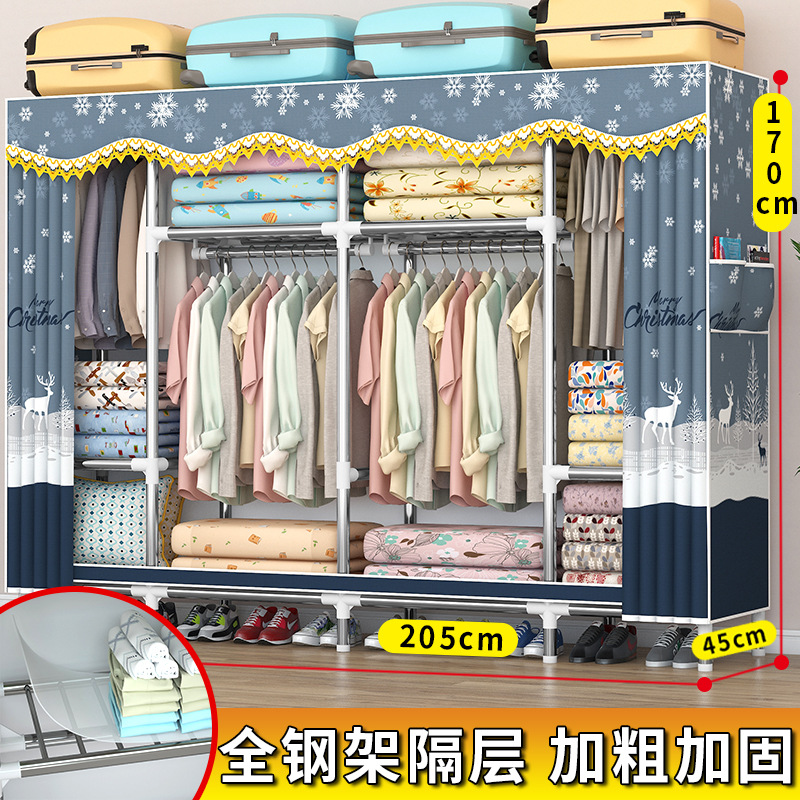 가정용 견고한 조립 임대 주택 천 옷장 전체 강철 프레임 구조 내구성 침실 간단한 옷장 두꺼운스토어 가기
