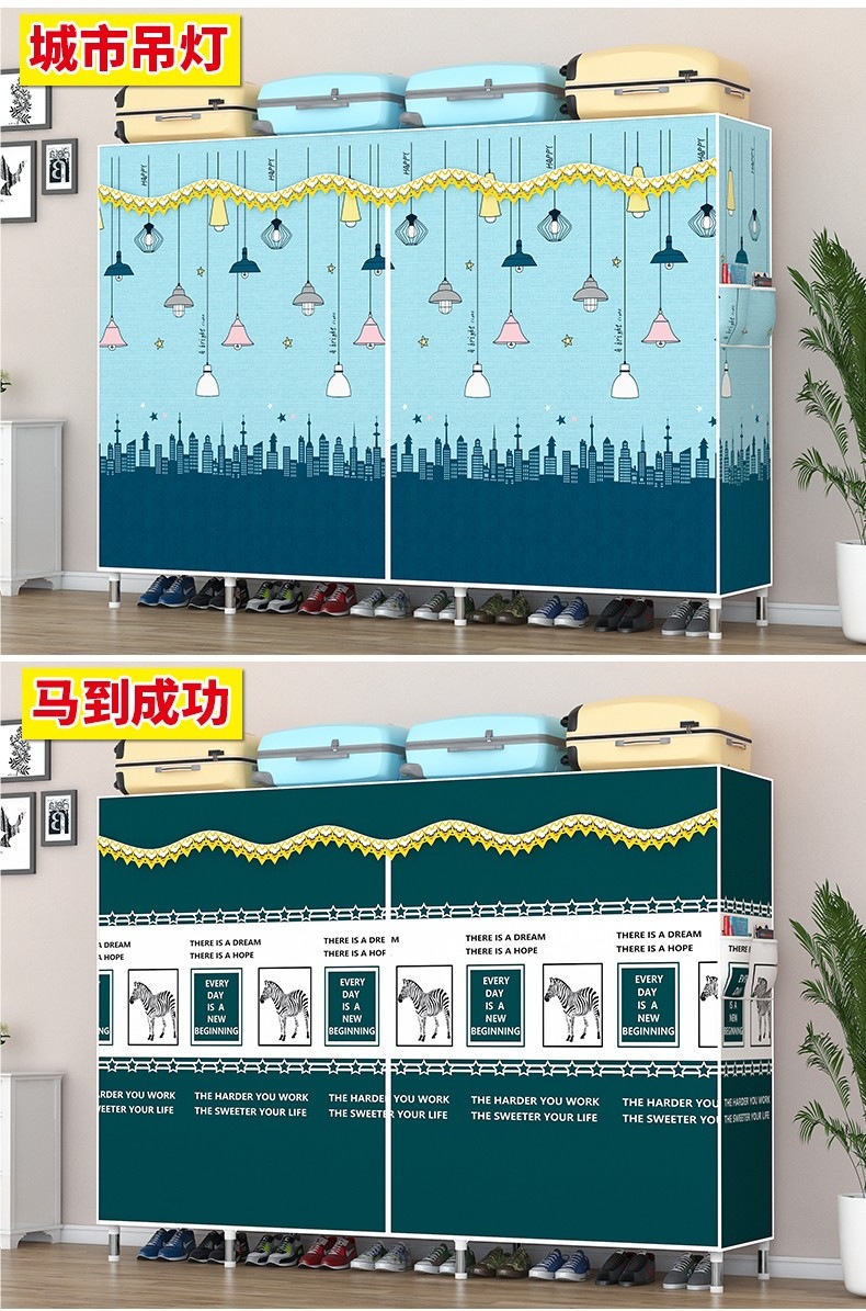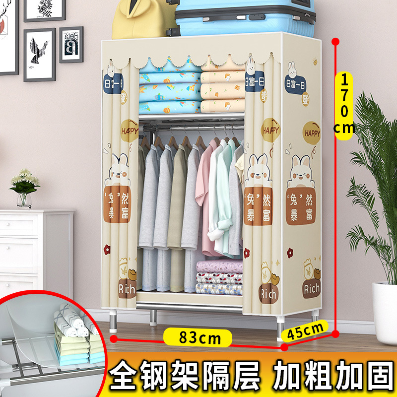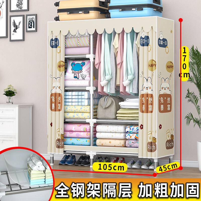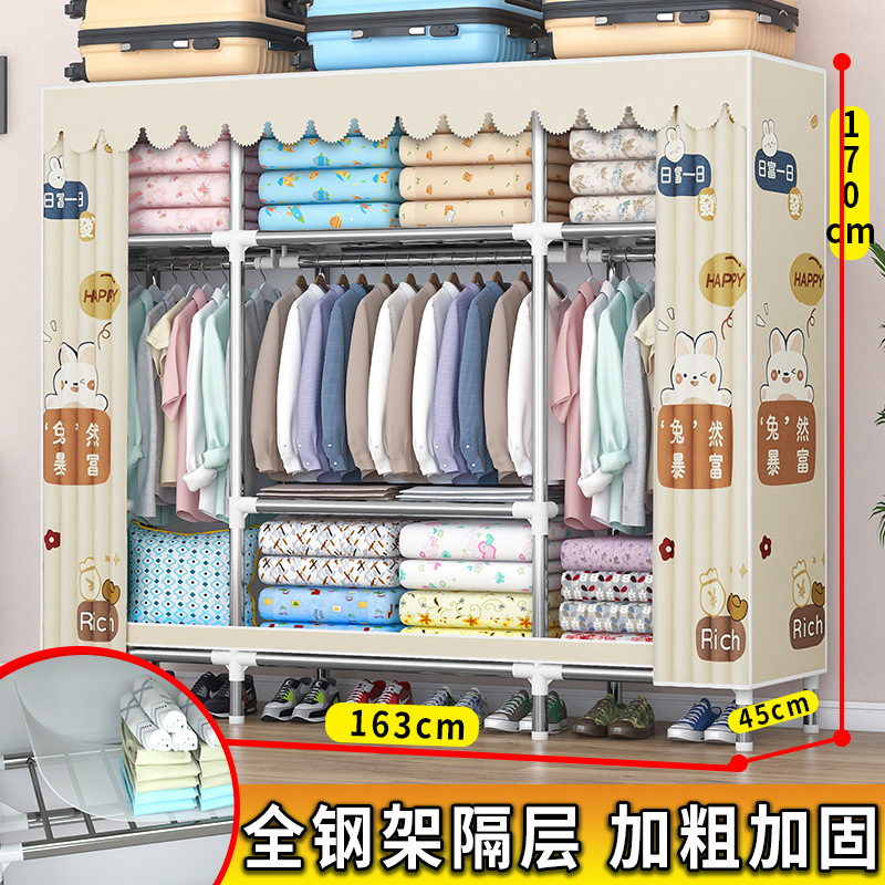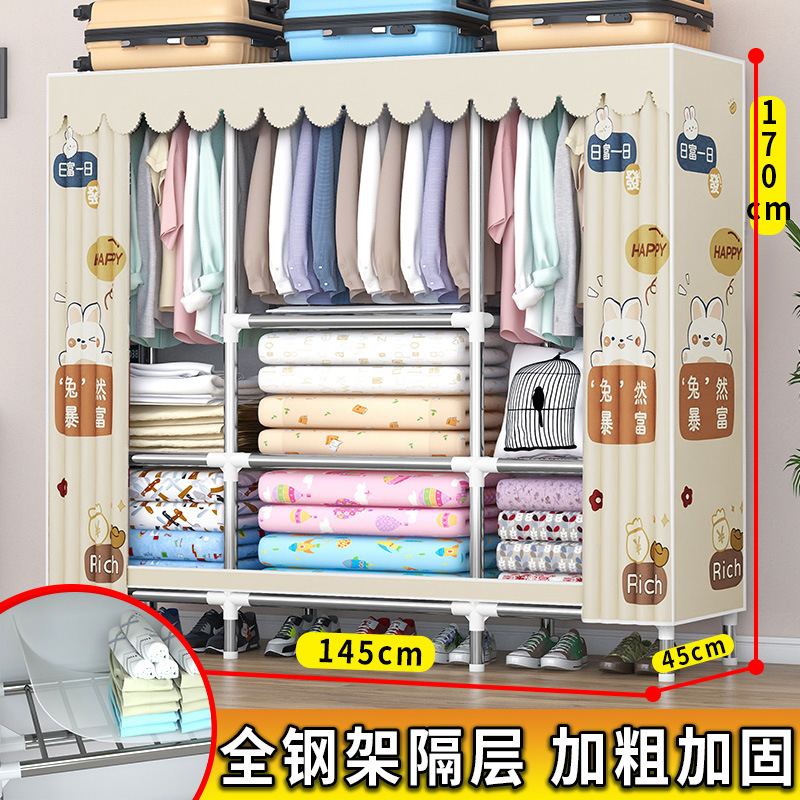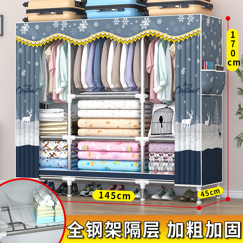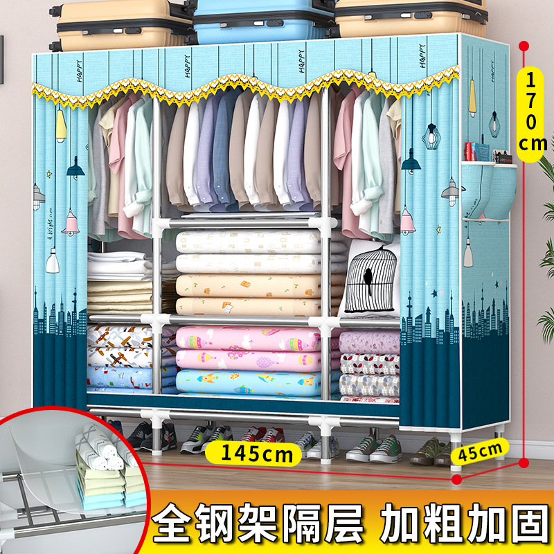 가정용 견고한 조립 임대 주택 천 옷장 전체 강철 프레임 구조 내구성 침실 간단한 옷장 두꺼운스토어 가기