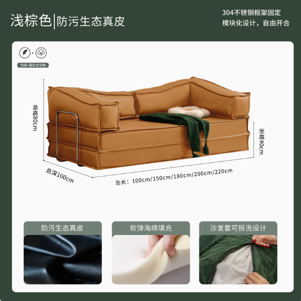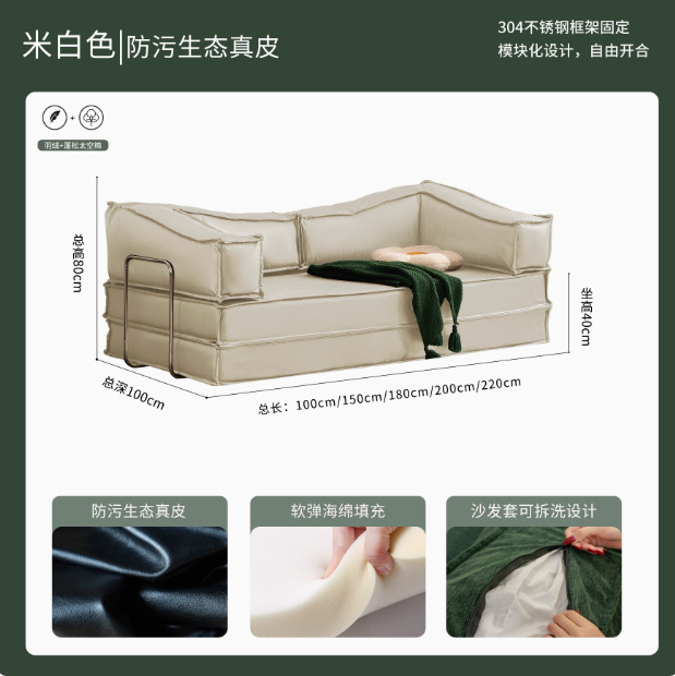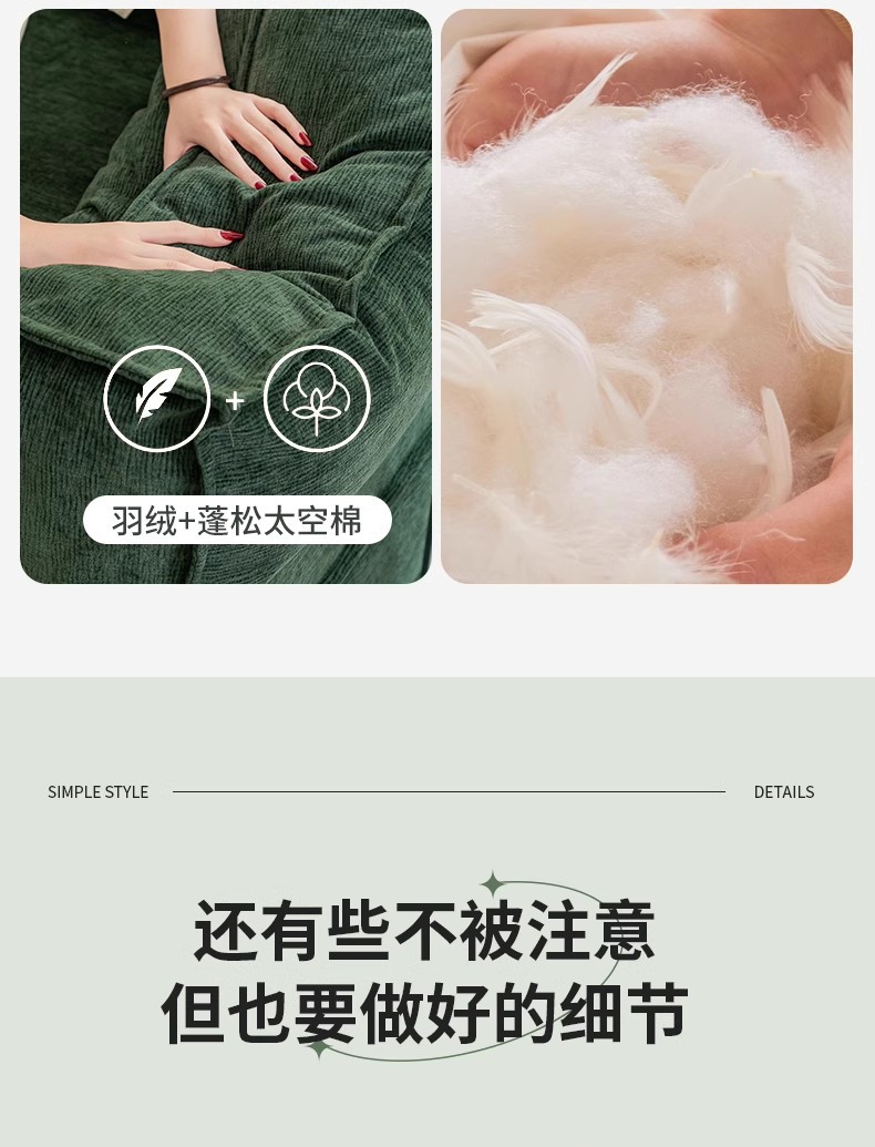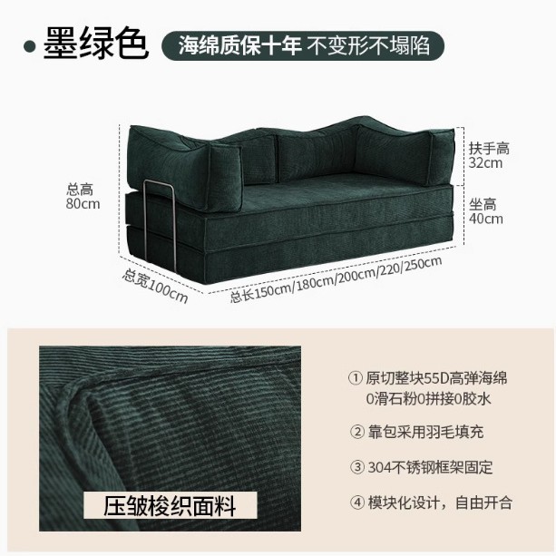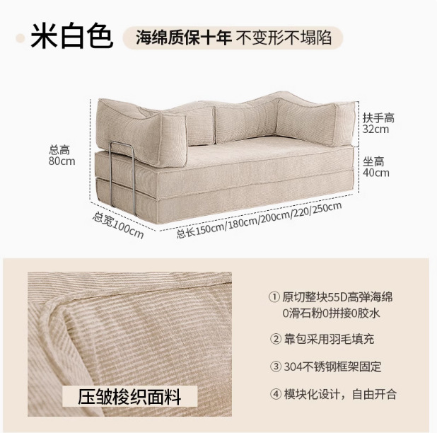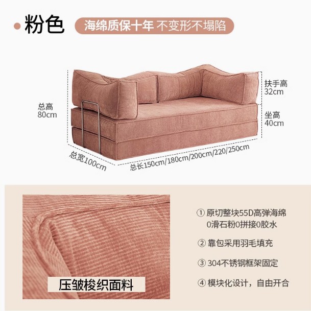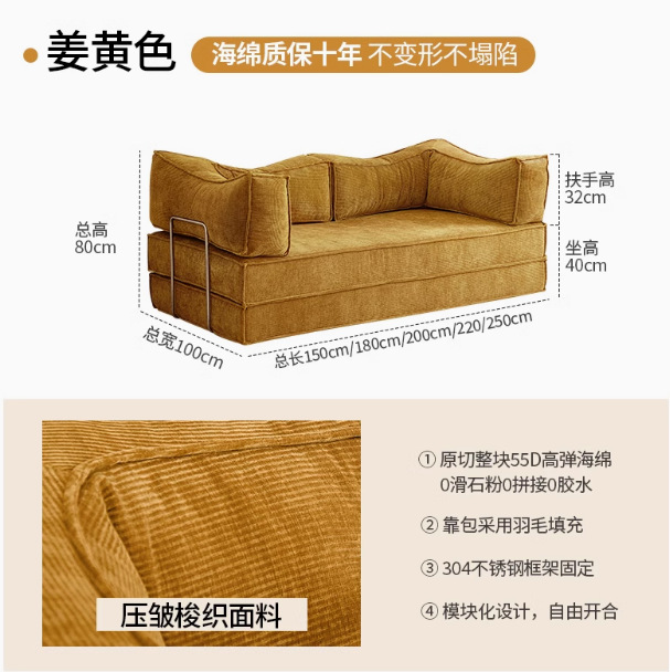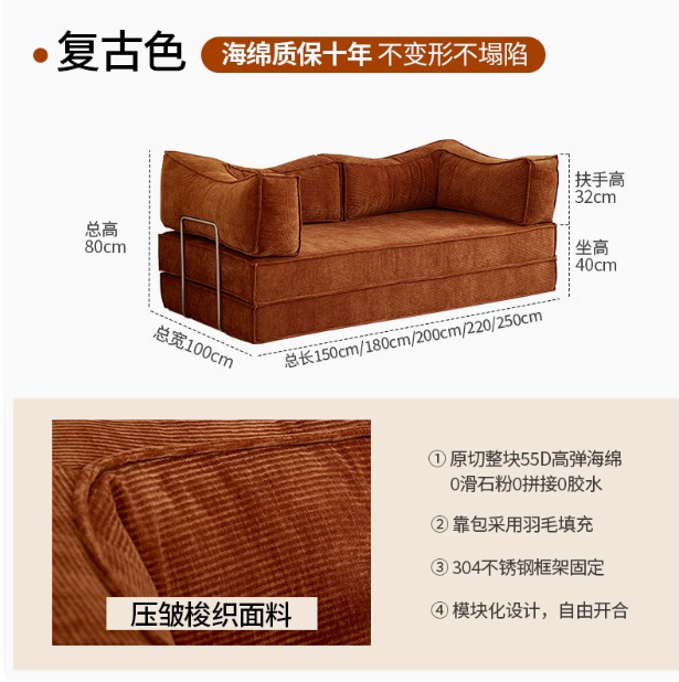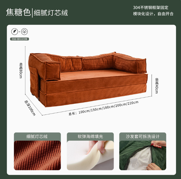 소파베드 접이식 겸용 소형 거실 침실 가정용 탈부착 가능 세탁 가능 2인용/3인용 모듈형 소파 모던 다운