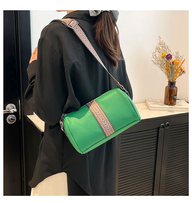 레트로 대용량 솔리드 컬러 질감 2025 캐주얼 스타일 심플 와이드 밴드 패션 크로스 바디 숄더 베개 여성용 가방