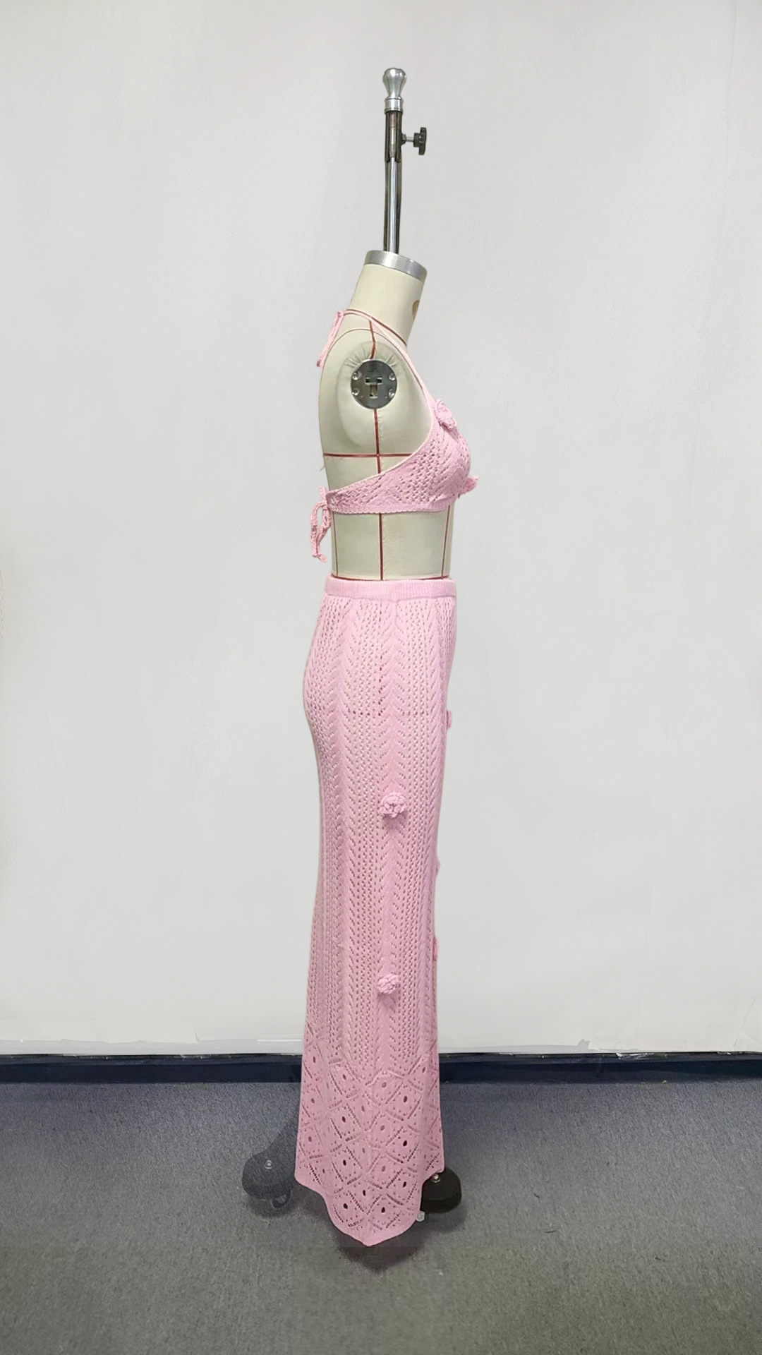 Manga 2025 크로스보더 유럽과 미국의 새로운 섹시한 플로팅 플라워 웨이스트 비키니 스트랩 홀터넥 니트 여성 롱 스커트