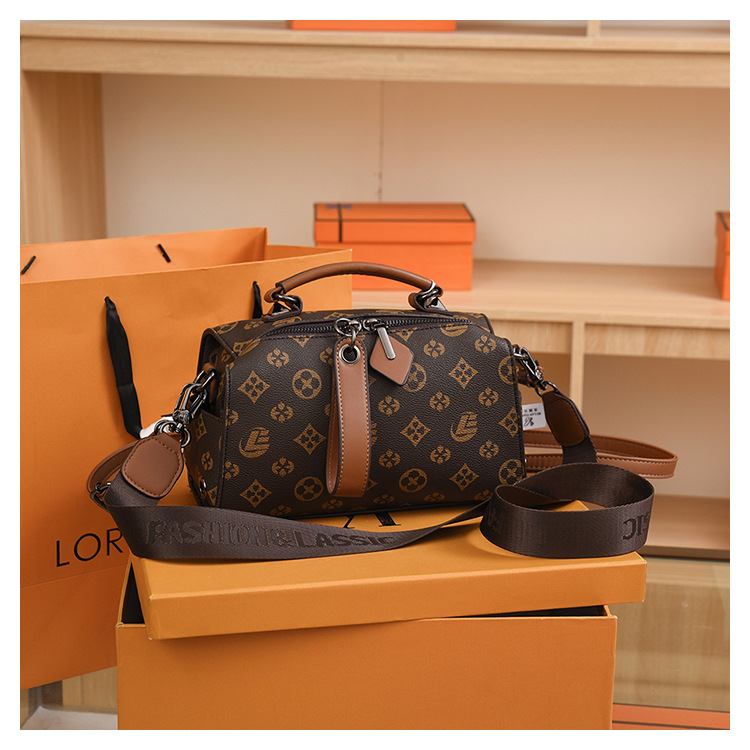 여성용 가방 2025 새로운 스타일의 세련된 휴대용 보스턴 가죽 질감 작은 사각형 가방 엄마 가방 어깨 크로스 바디 백스토어 가기