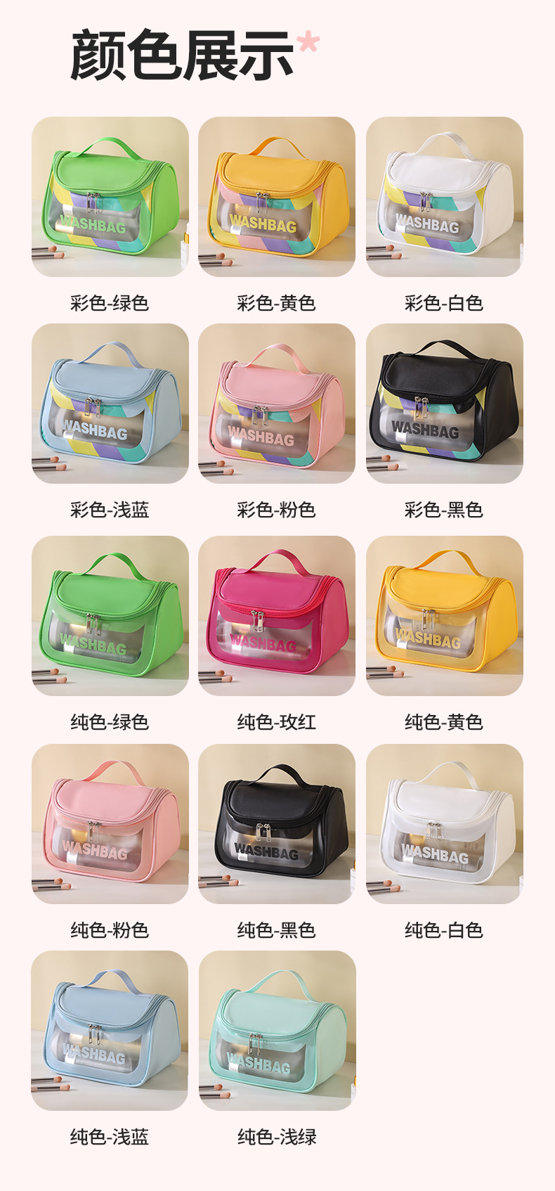 PVC 심플 럭셔리 투명 화장품 가방 잡화 방수 휴대용 화장품 일용품 휴대용 여행용 수납 가방