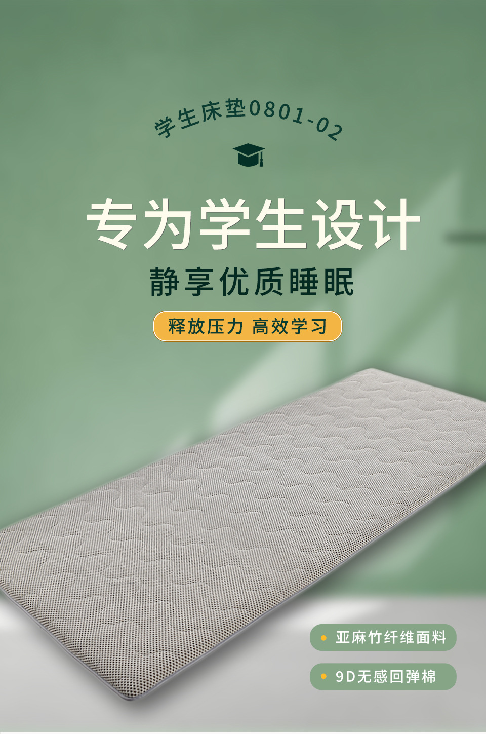 맞춤형 도매 두꺼운 기숙사 이층 침대 싱글 대나무 접이식 섬유 린넨 스폰지 5cm 학생 매트리스