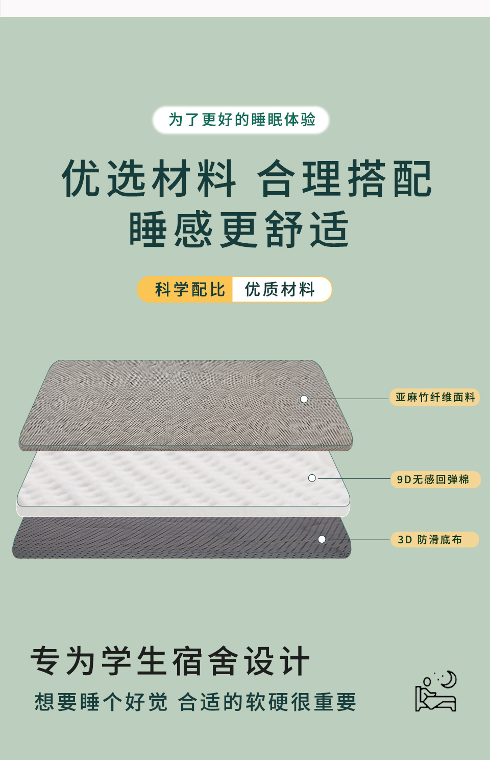 맞춤형 도매 두꺼운 기숙사 이층 침대 싱글 대나무 접이식 섬유 린넨 스폰지 5cm 학생 매트리스스토어 가기