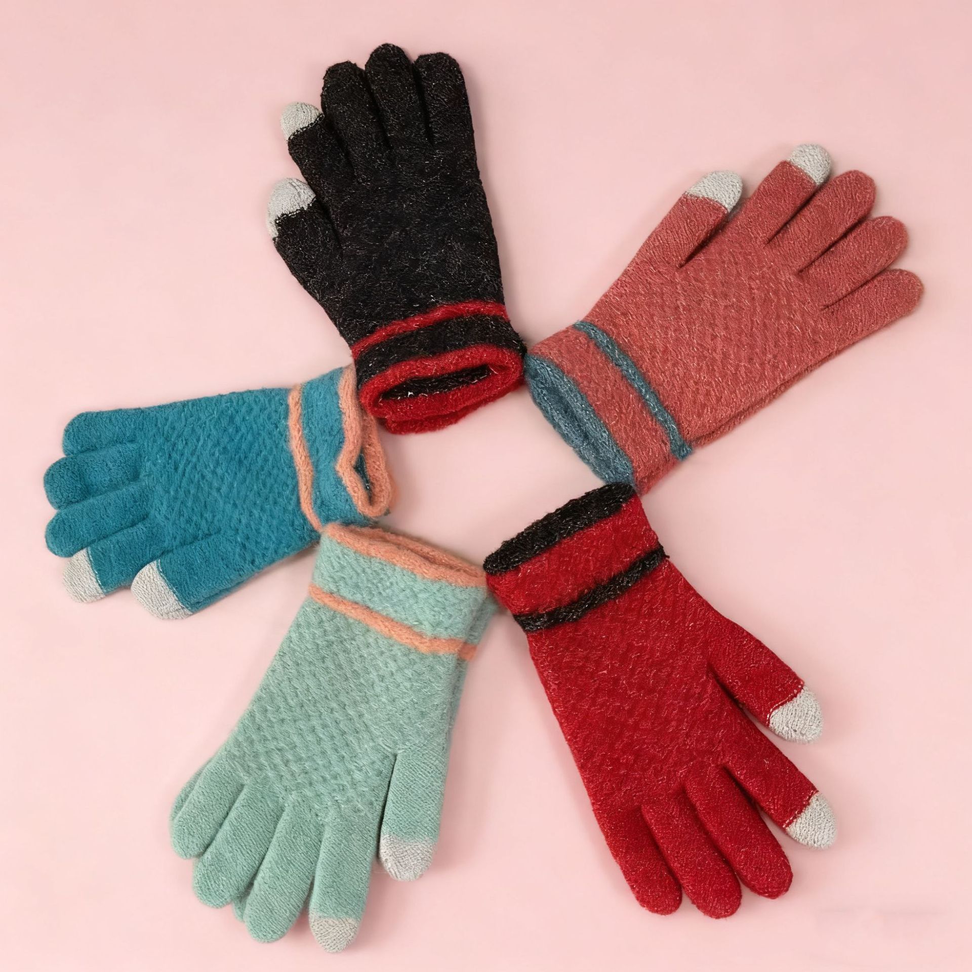 여성용 가을 겨울 한국 스타일 신상 방한 풀핑거 패션 니트 따뜻한 자카드 풀핑거 파인애플 장갑