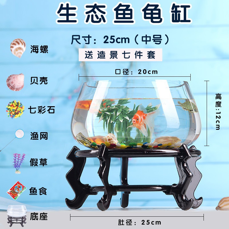 새로운 물고기 탱크 유리 라운드 책상 pothos 수경 가정용 작은 물고기 크리 에이 티브 투명 작은 미니 테이블스토어 가기