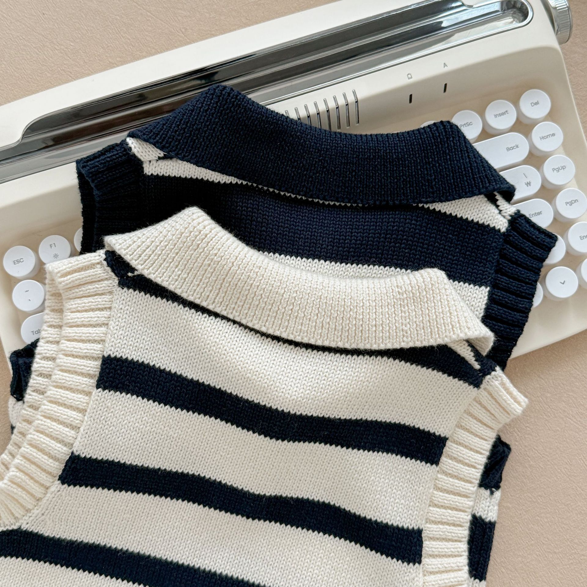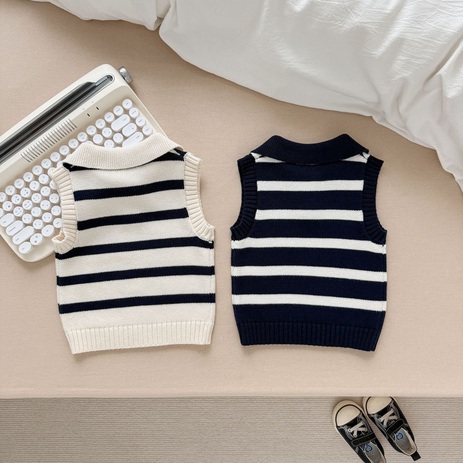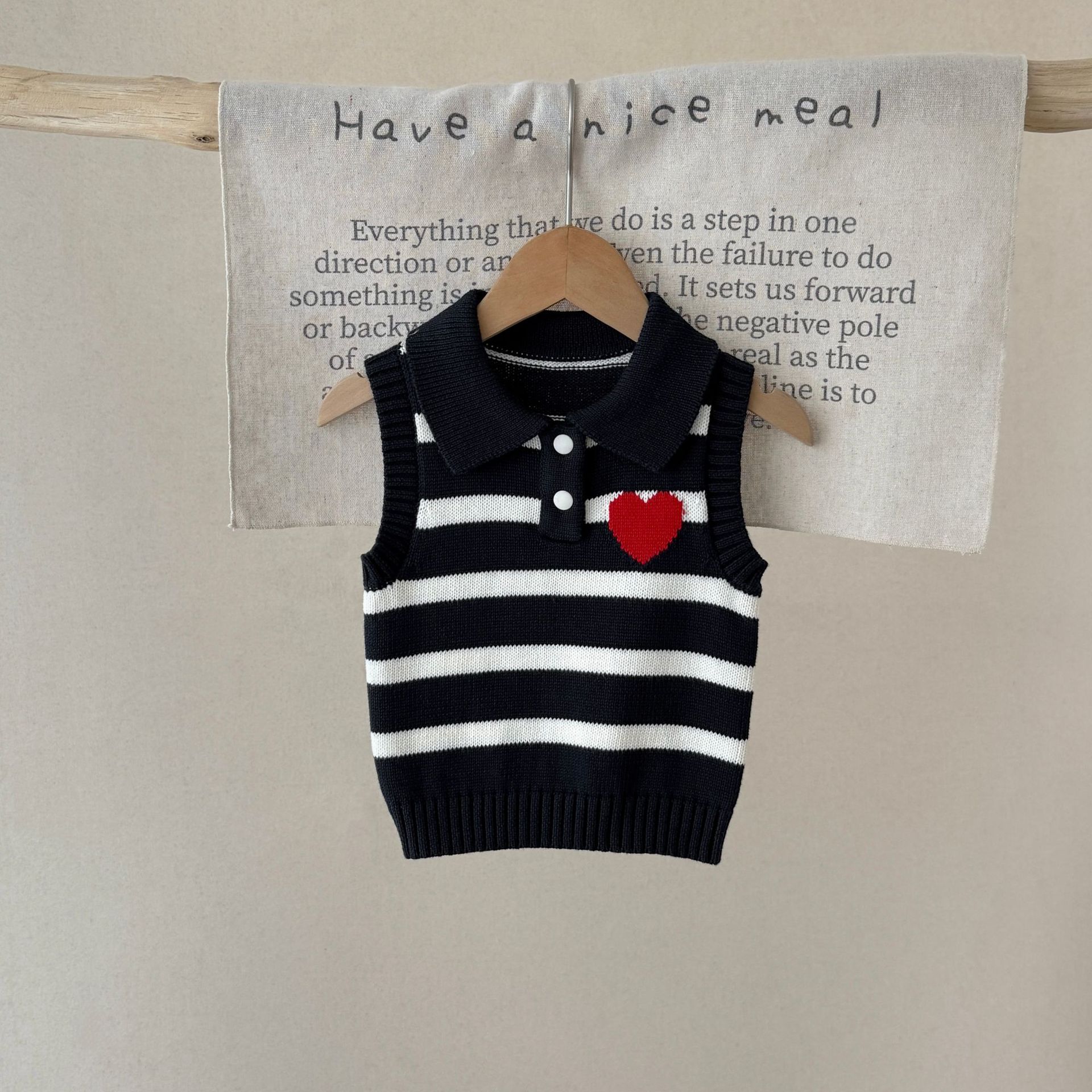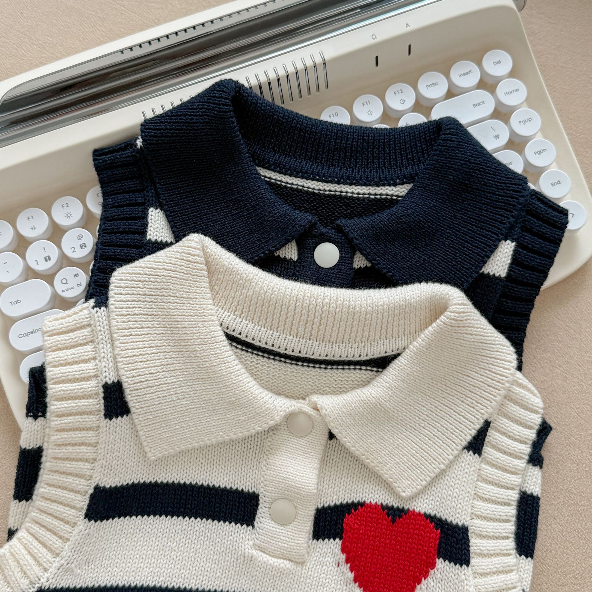 남녀 아기 조끼 봄 가을 작은 하트 폴로 칼라 니트 스트라이프 외투 조끼 스웨터