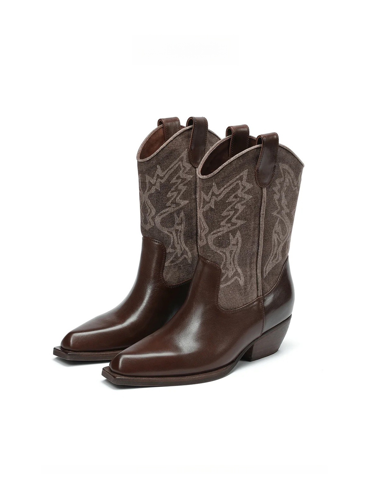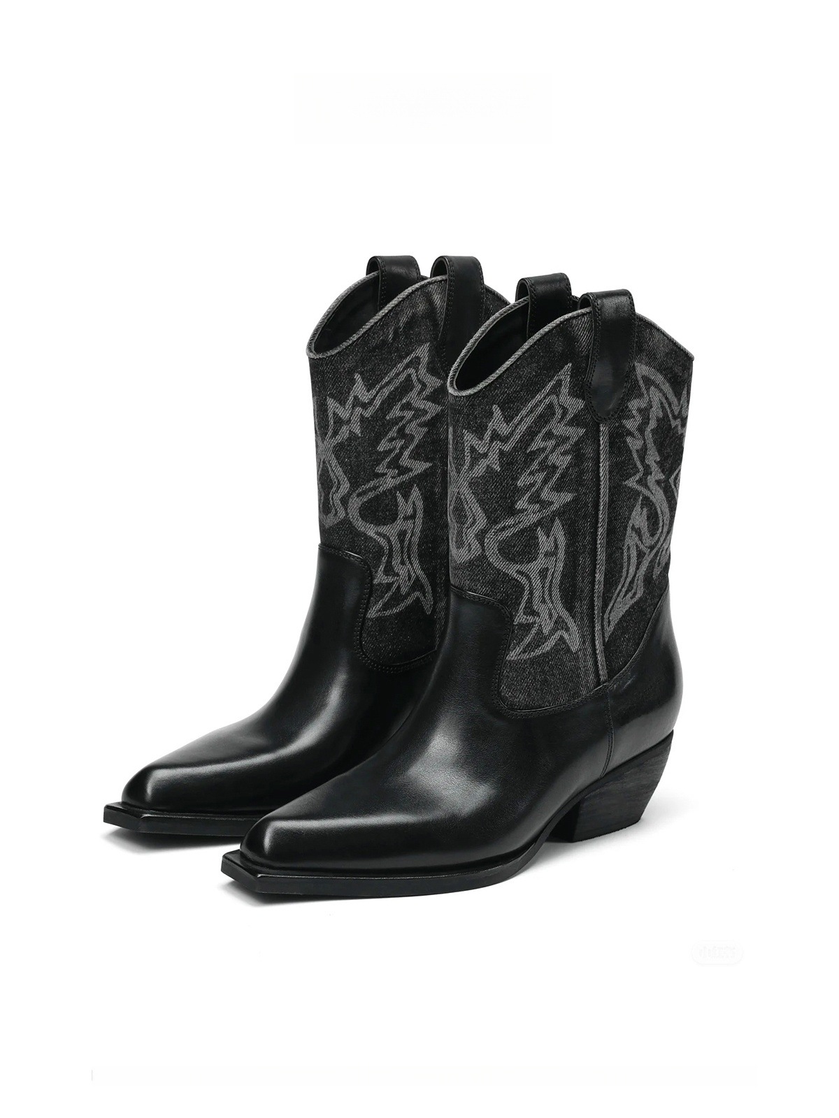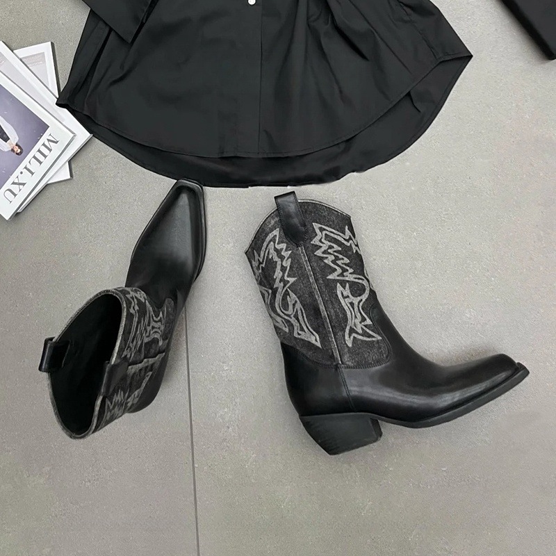 인터넷 유명인과 같은 스타일의 뾰족코 굵은 굽 조각 웨스턴 카우보이 부츠 여성용 2025년 여름 신상 컬러 블록 레트로 스타일 숏부츠스토어 가기