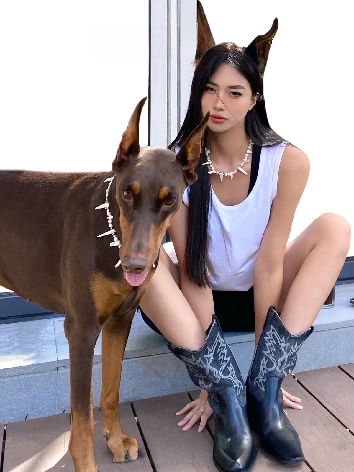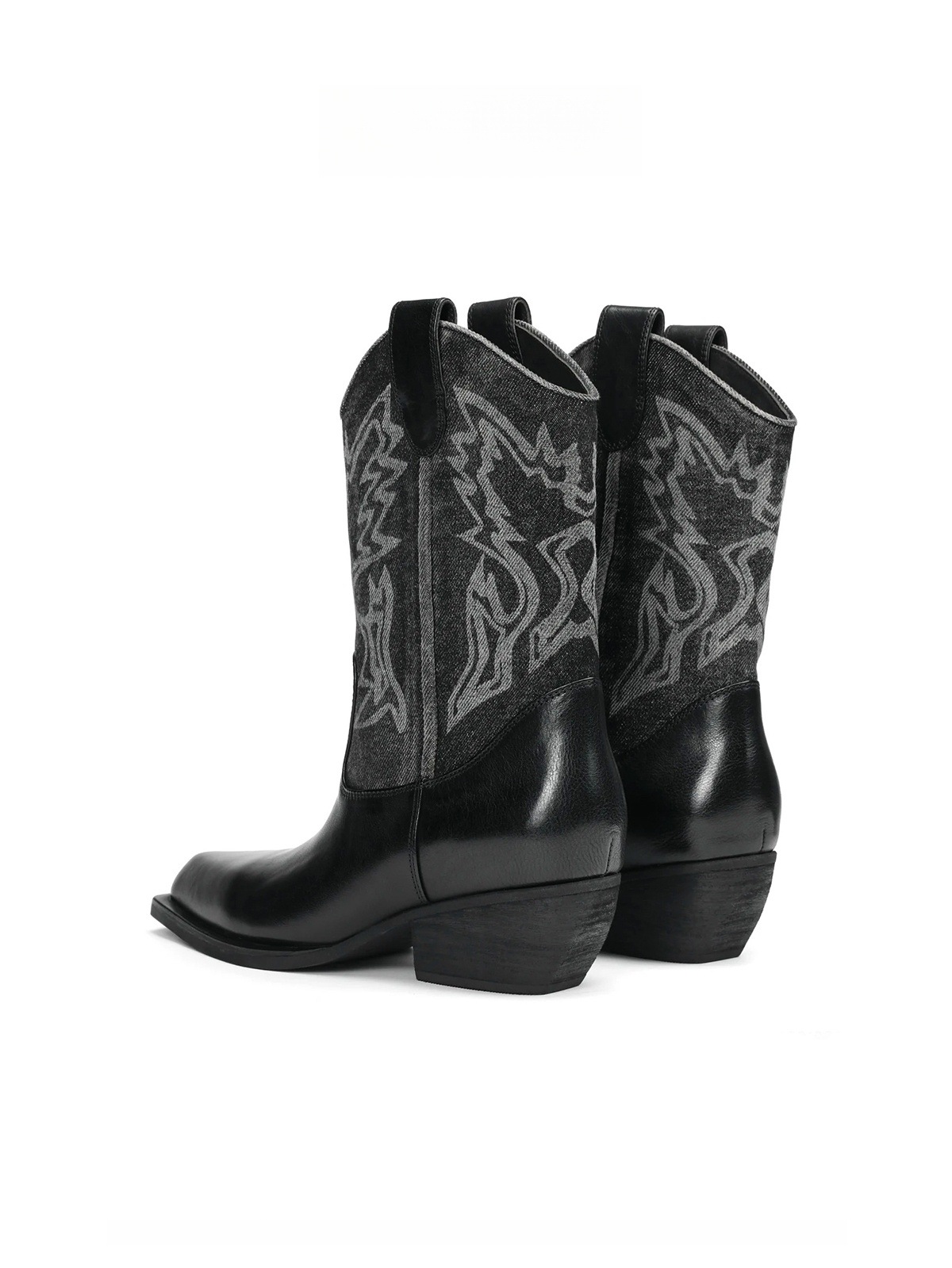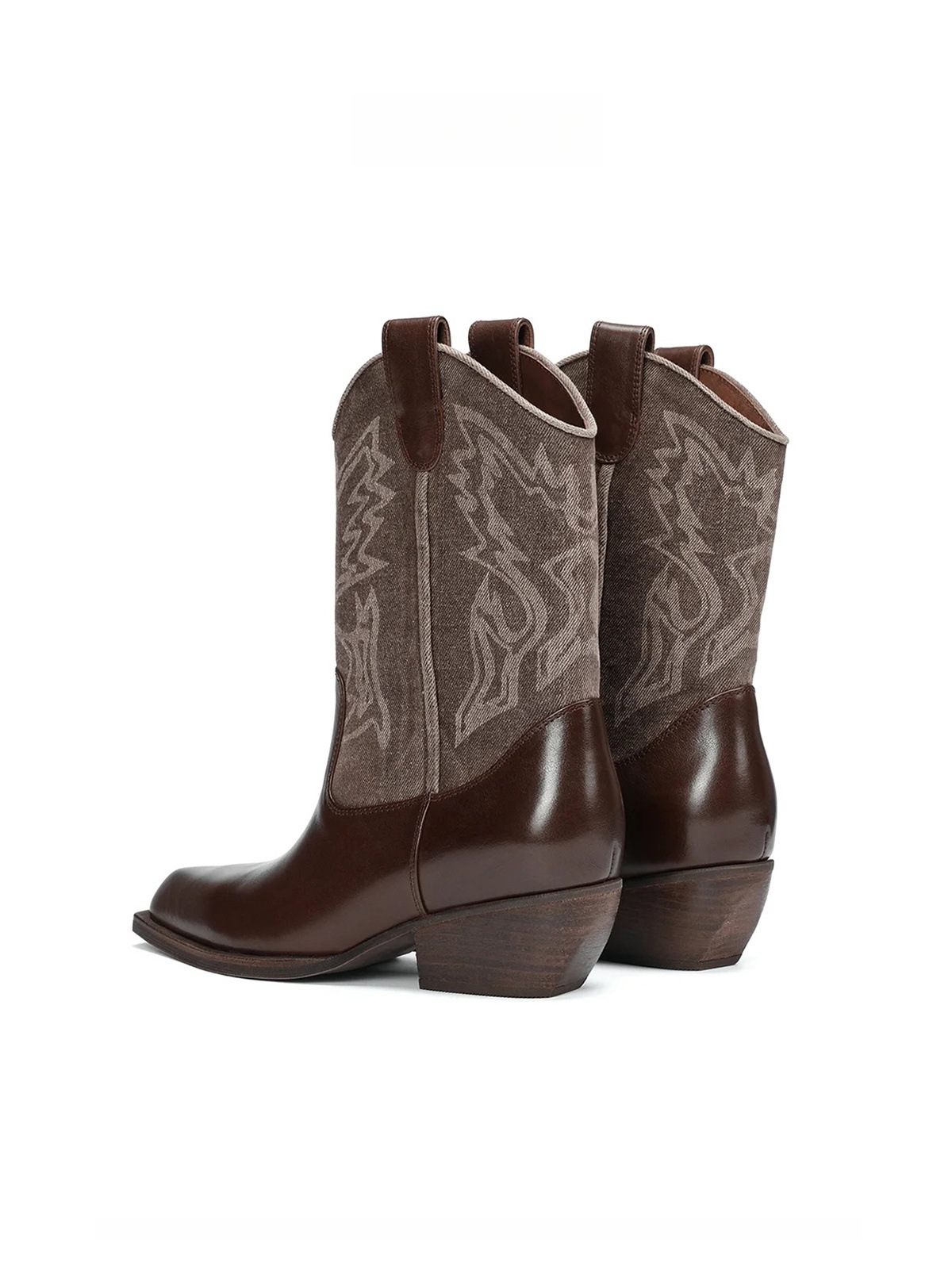 인터넷 유명인과 같은 스타일의 뾰족코 굵은 굽 조각 웨스턴 카우보이 부츠 여성용 2025년 여름 신상 컬러 블록 레트로 스타일 숏부츠스토어 가기