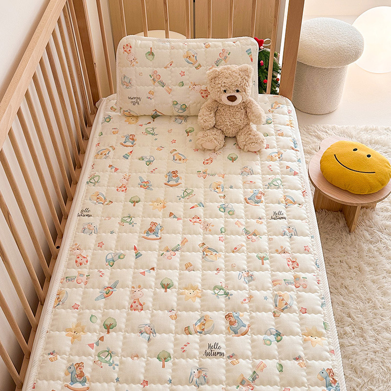 클래스 a 면 더블 레이어 원사 매트리스 어린이 순면 퀼트 소프트 쿠션 두꺼운 침대 시트 어린이 유아용 침대 커버 유치원스토어 가기
